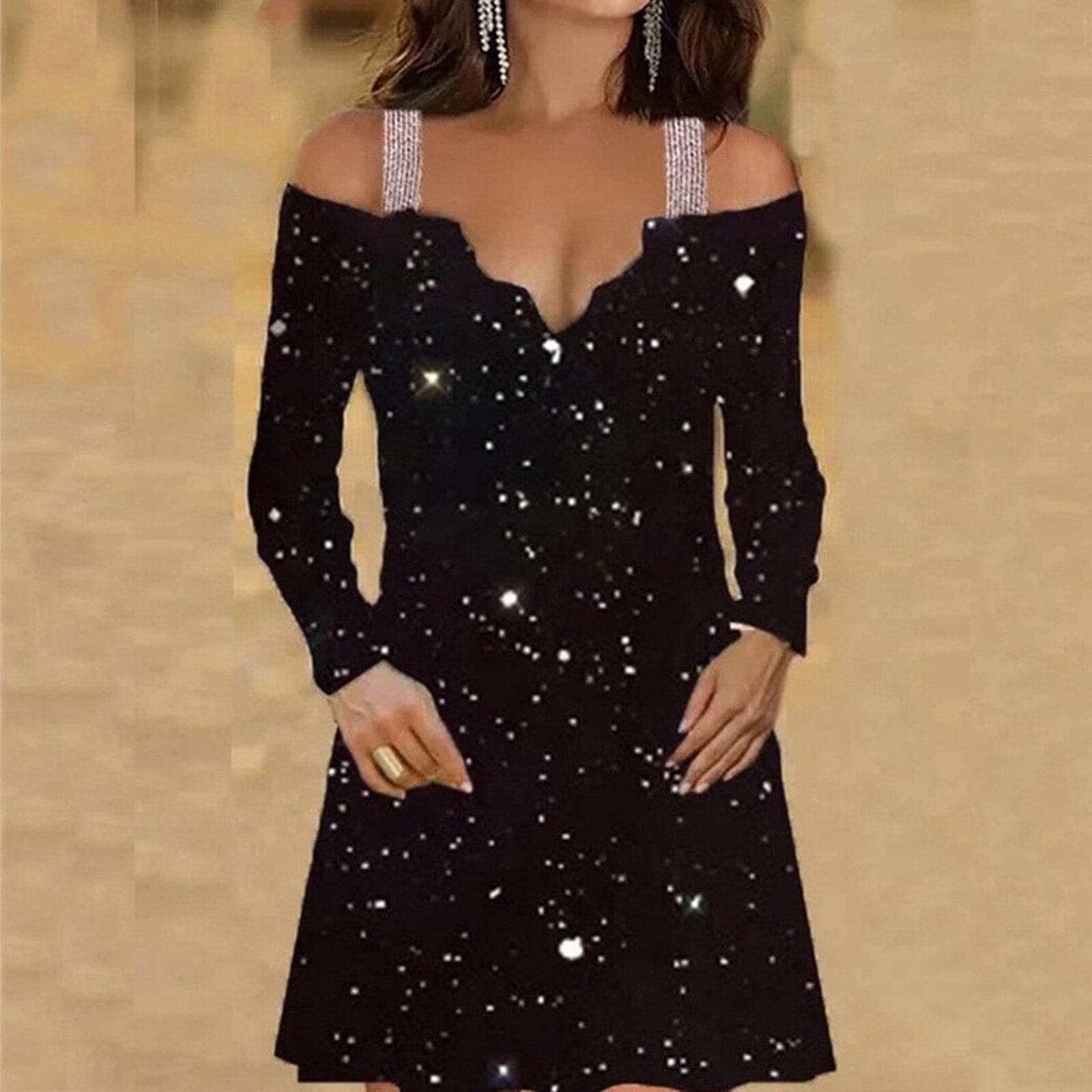 Jeebas - Summer Sexy Women Shiny Rhinestone Lace Elegant Dress