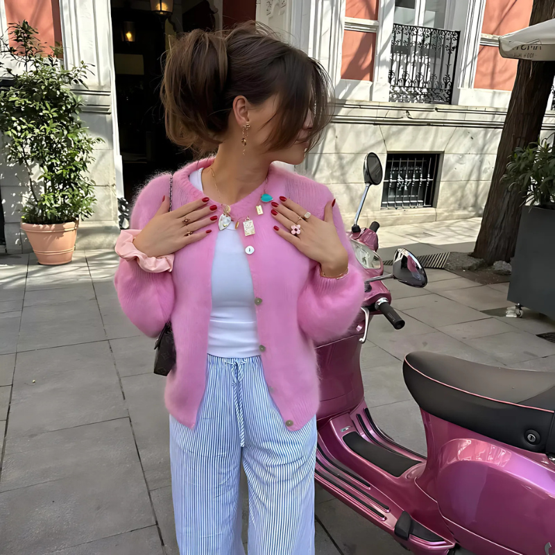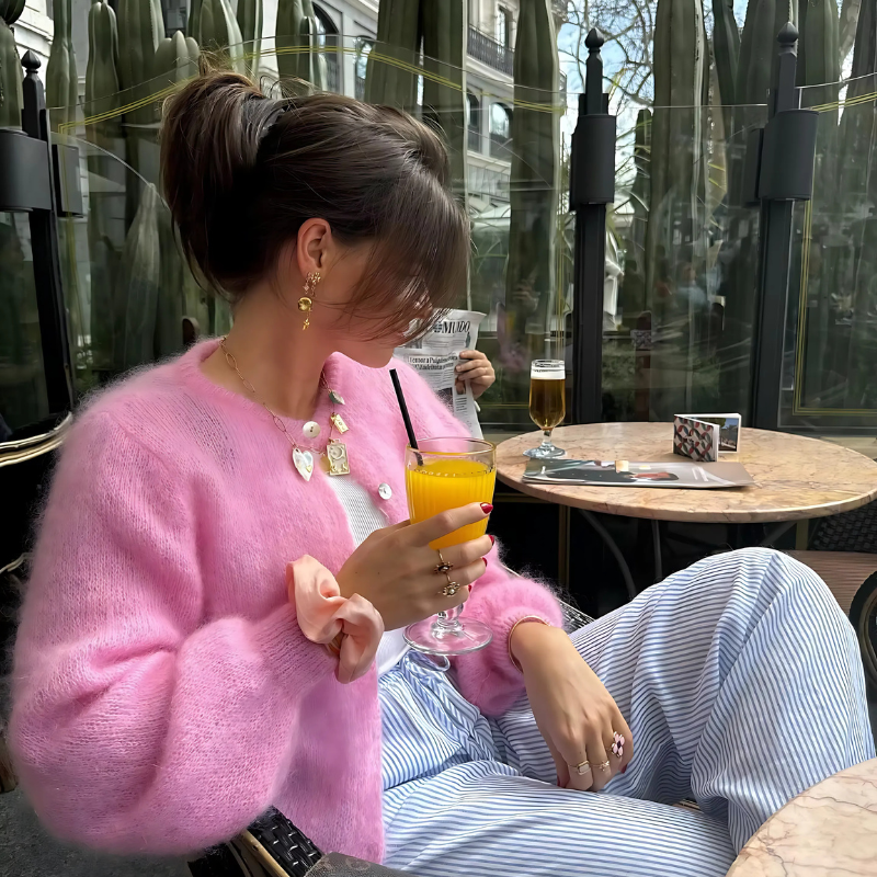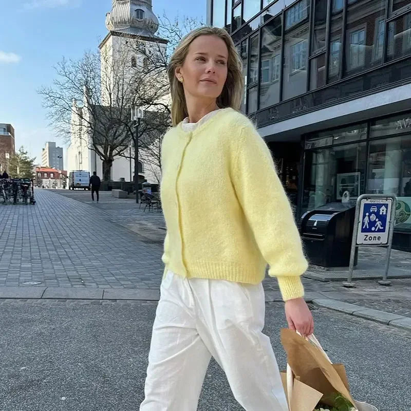Get cozy with the Adelyn Knitted Cardigan by Bella Chix! 🎉 With its loose O-neck design. you'll stay warm and comfortable while also looking stylish. Perfect for chilly days or snuggling up by the fire. (We won't judge if you wear it every day 😉)