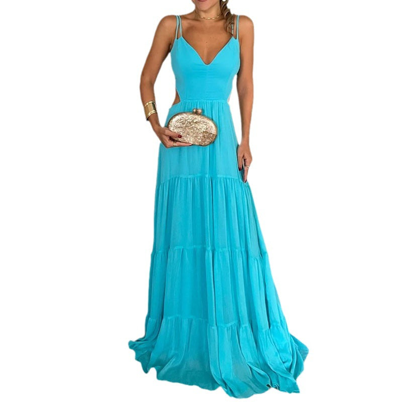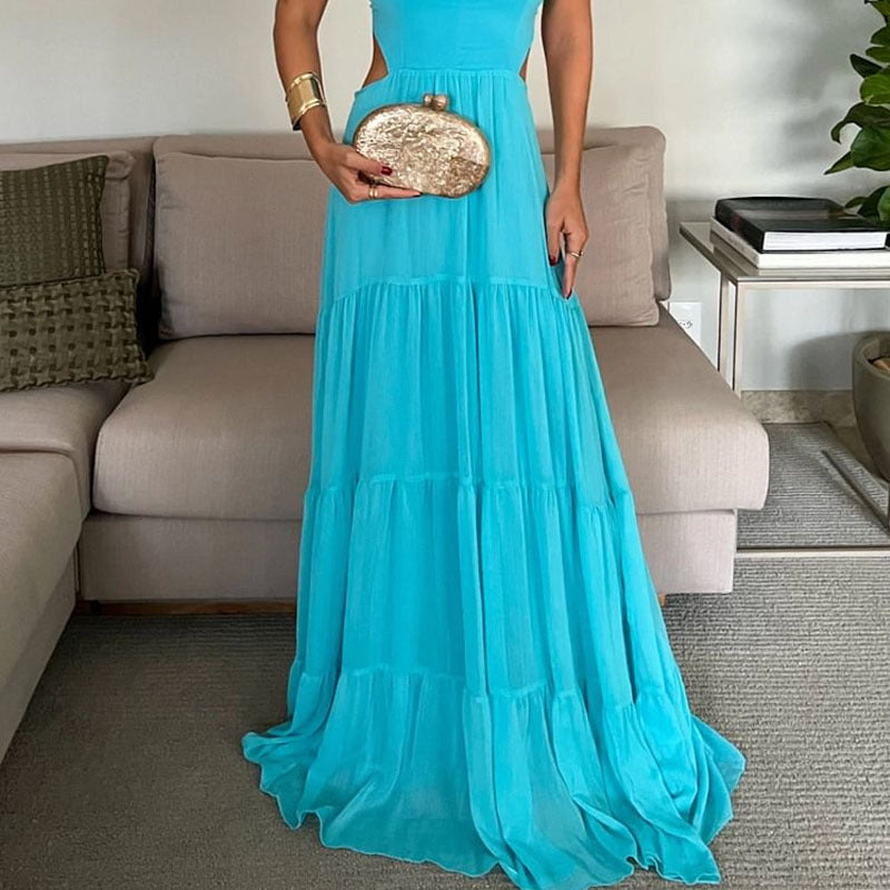 Its exquisite turquoise hue and delicate construction set it apart. offering a light and graceful silhouette. Perfect for beach days. outdoor dinner parties. or warm summer picnics. this dress combines comfort with elegance. Subtle styling details enhance its charm. making it a must-have for any fashion-forward wardrobe.