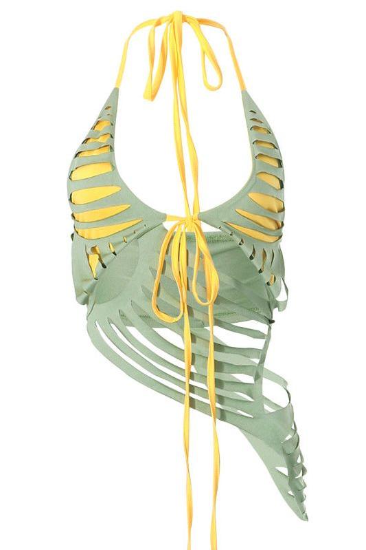 Introducing the Backless Halterneck Strap Burnt Slim Fit Top. a truly unique addition to your wardrobe. This top stands out with its eye-catching burnt color. designed to complement any skin tone and elevate your style.