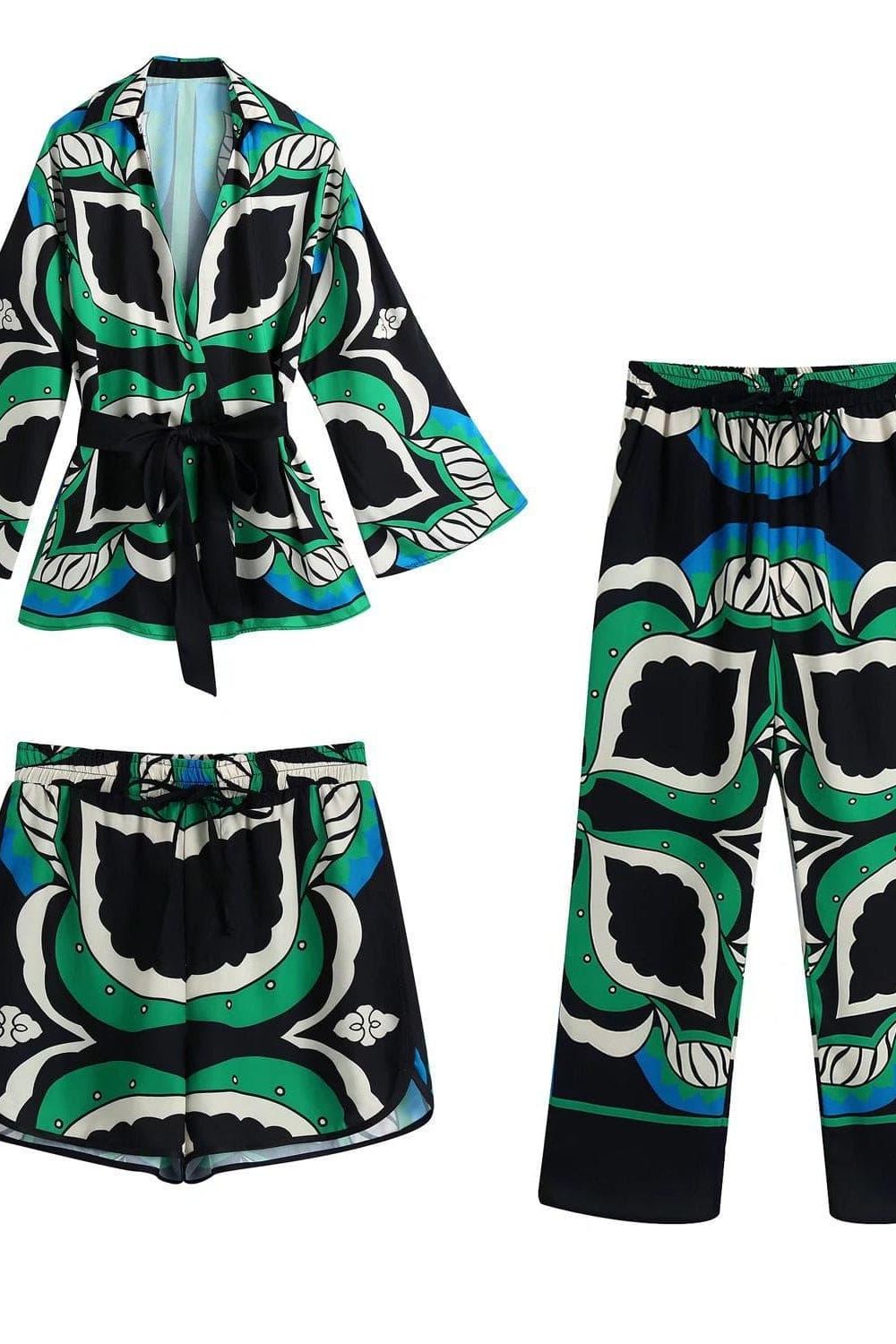 Introducing the Bermuda print three-piece long-sleeved shirt loose suit. a standout addition to your wardrobe. Crafted from lightweight. comfortable fabric. this suit is designed for those who appreciate both style and ease.