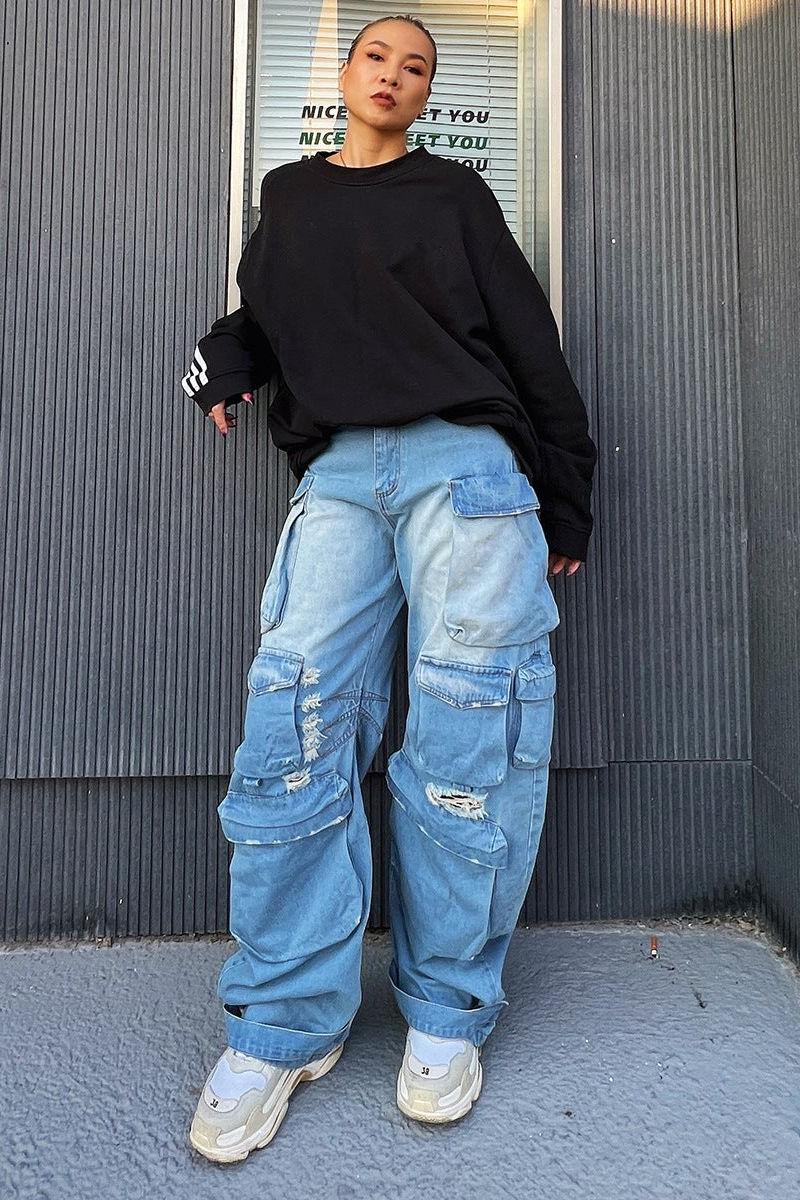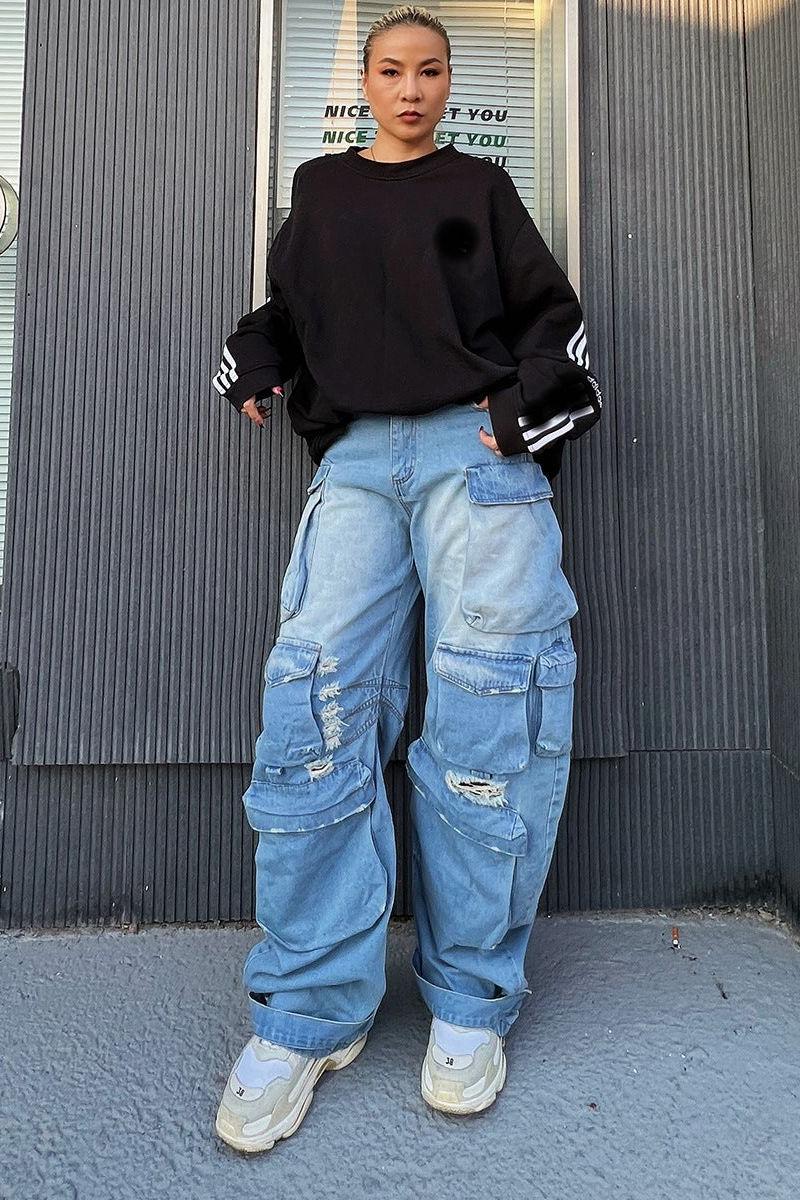 Discover the Big Pocket Old Gradient Ripped Jeans. a standout piece that redefines casual fashion. With their unique gradient design. these jeans blend vintage charm with contemporary flair. making them a must-have for any wardrobe.