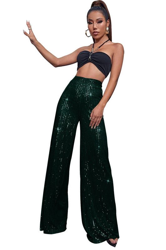 Introducing our Casual Sequined Loose Drape Pants. a unique blend of comfort and style. These pants redefine casual wear with their effortless drape and eye-catching sequin detailing.