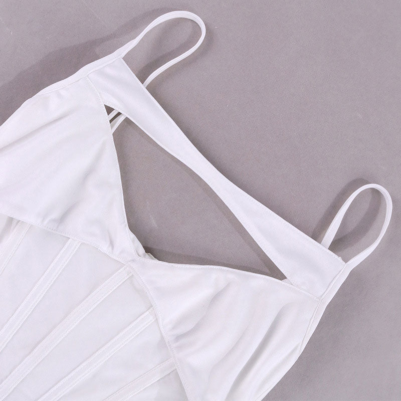 Make an unforgettable entrance in this tank top! Made of airy mesh and soft polyester. embellished with an angular cutout at the front. featuring a square neckline. a sleeveless styling framed with adjustable shoulder strings. a corseted bodice designed with seamed bones. a gold-tone exposed zipper at back. an hourglass silhouette accented with a curved hemline. ending up with a short length. Find more trendy women's spaghetti-strap tops or unique clothing in our boutique. and wear it with a pair of leather pants for an edgy look.