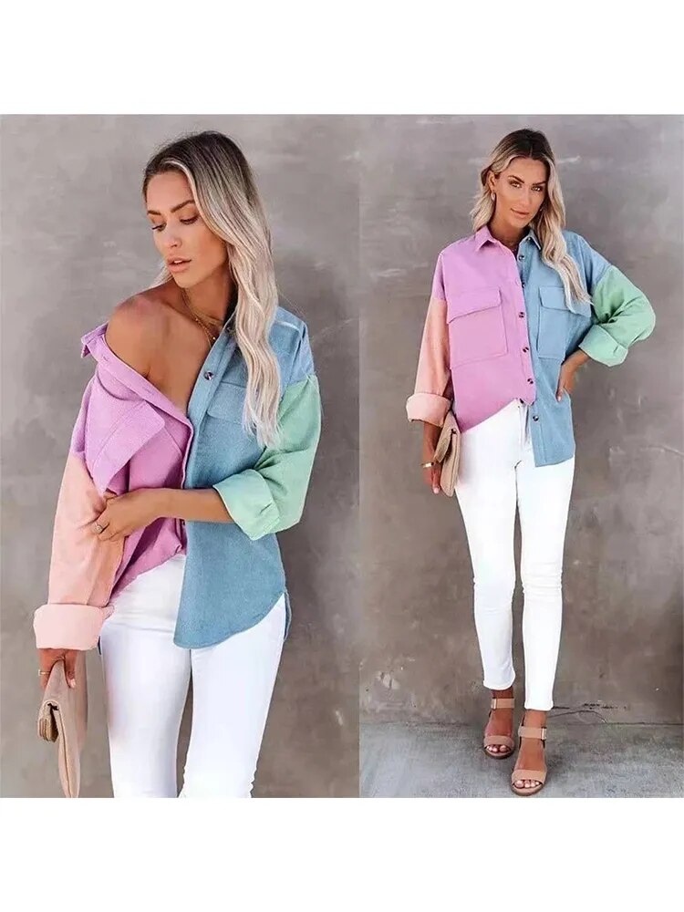 Look like you stepped right out of a storybook in this Dual Color Corduroy Long Sleeve Huescape Patchwork Shirt by Bella Chix! Unique and stylish. it's guaranteed to give you a magical look no matter where you go! (Plus. you'll feel ready to take on the world!)