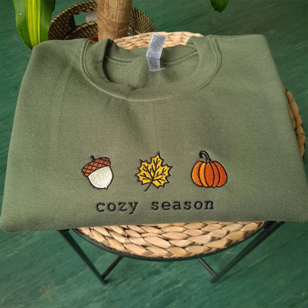 Cozy Season Fall Embroidered Sweatshirt Details :