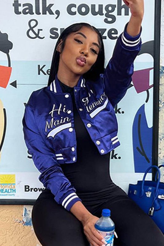With the crop top baseball jacket. you're not just wearing a jacket; you're showcasing your unique fashion sense.