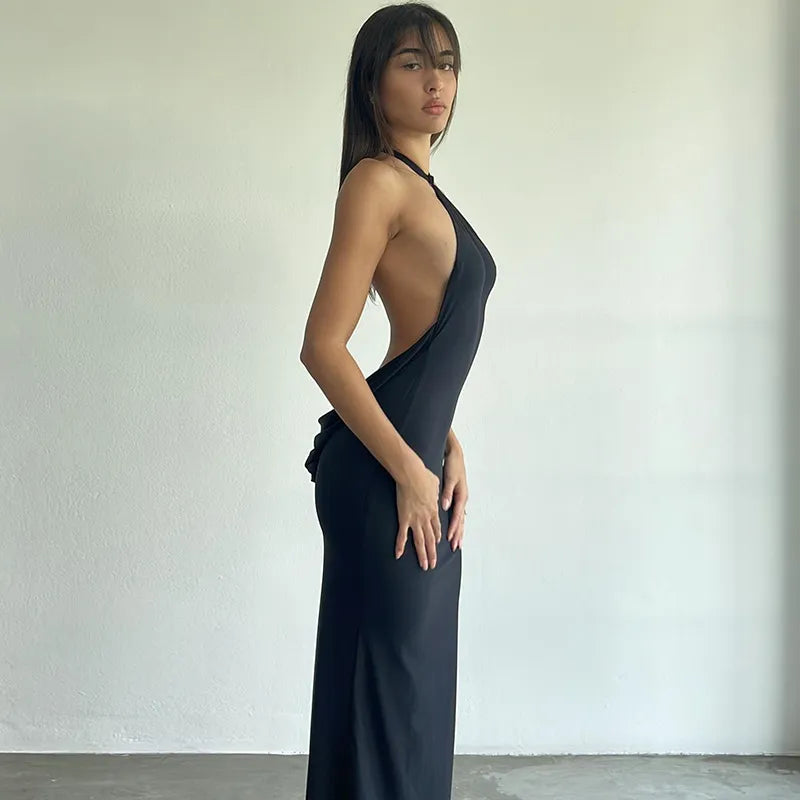 Flaunt it in this sensational Dark Temptress Backless Maxi Dress by Bella Chix! Made for an unforgettable night on the town. this stunning silhouette features a daring halter tie-up and a backless design - perfect for showing off that flawless tan! Make 'em swoon with this bewitching look!