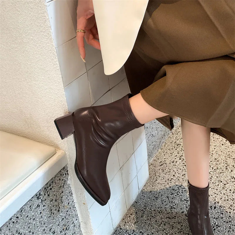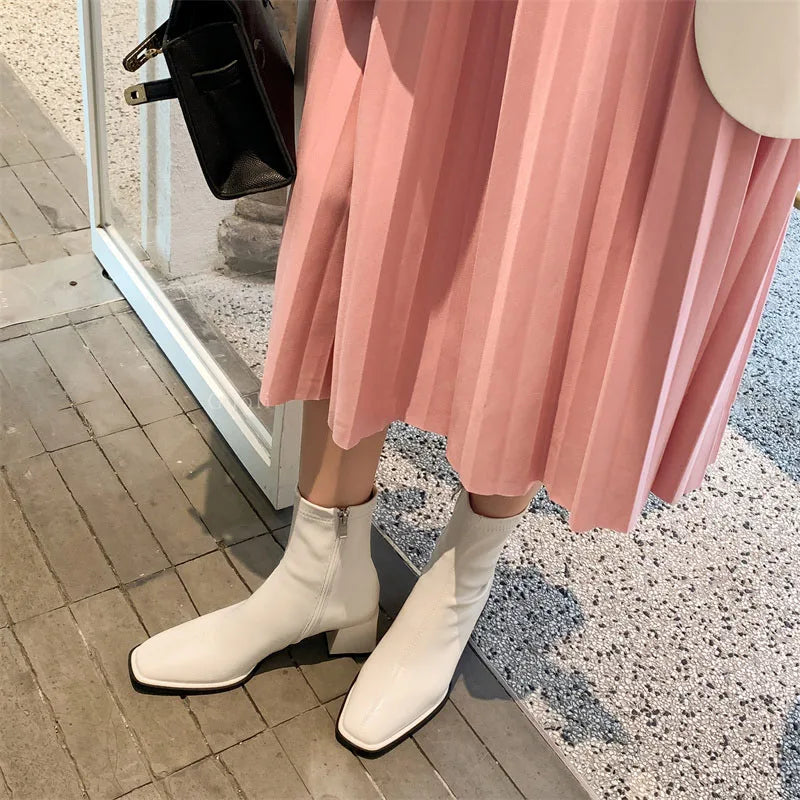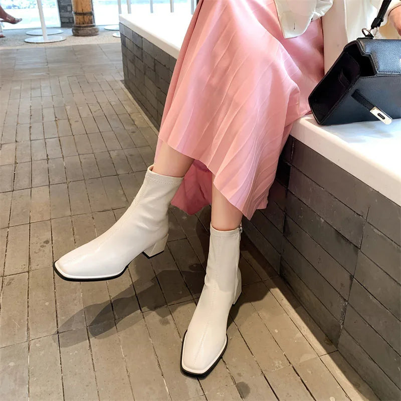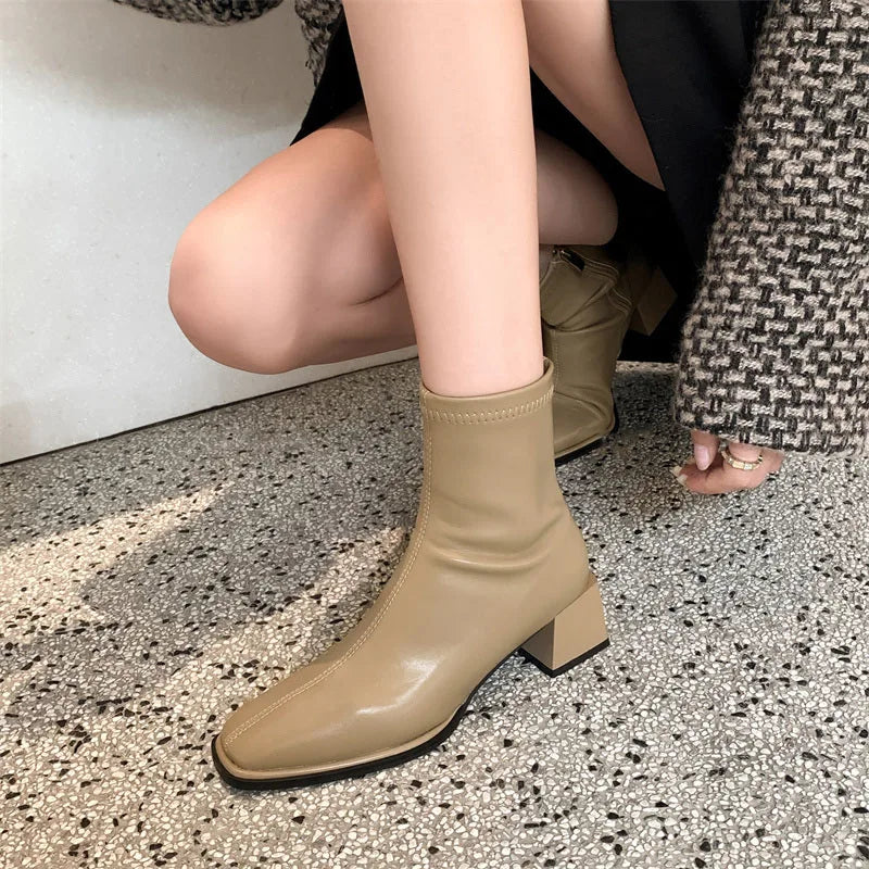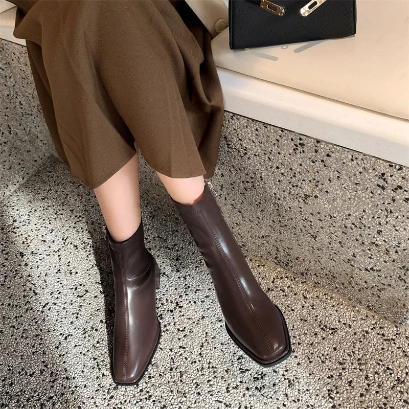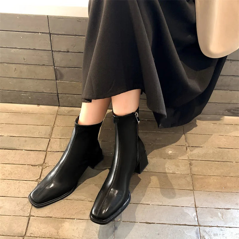 Rock the latest trend with Declan Square Toe Leather Boots by Bella Chix. Featuring a heel. ankle. and square toe design. these boots are both stylish and comfortable. With a convenient zipper closure and soft leather material. these shoes are perfect for any occasion. Upgrade your shoe game today!