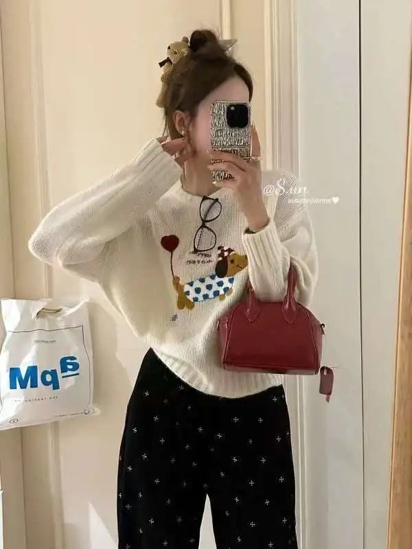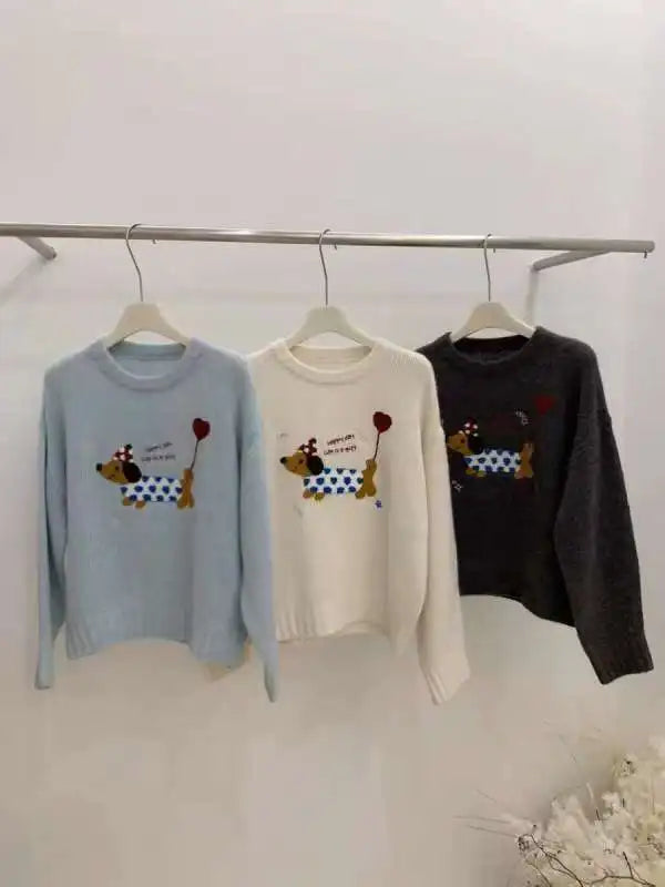 Dog Embroidery Knitted Sweater Pullover