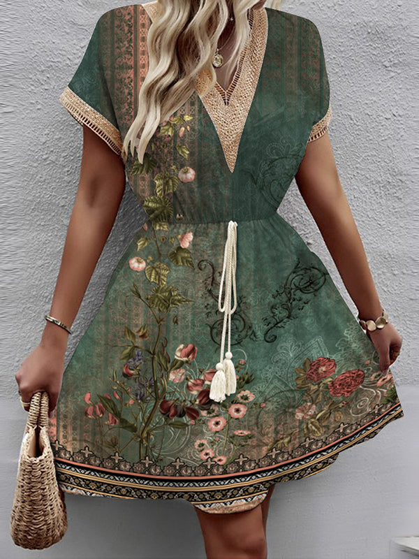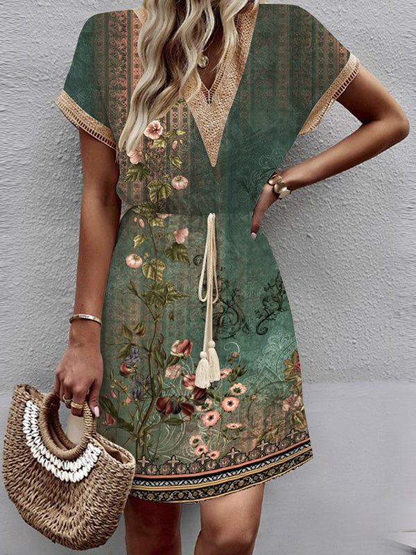 | Feature | Tied Waist . Flower Print . Tasseled . Hollow . Elasticity . Split-joint |