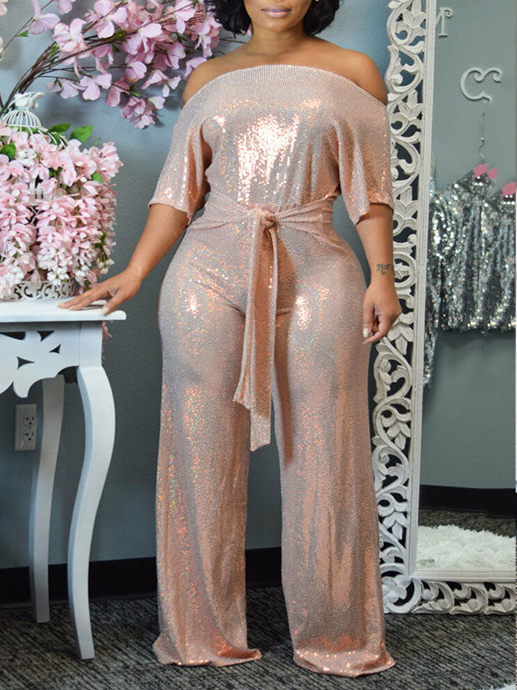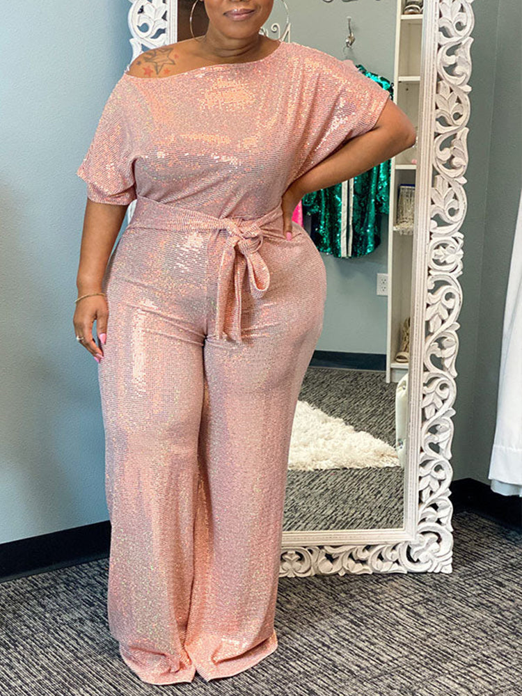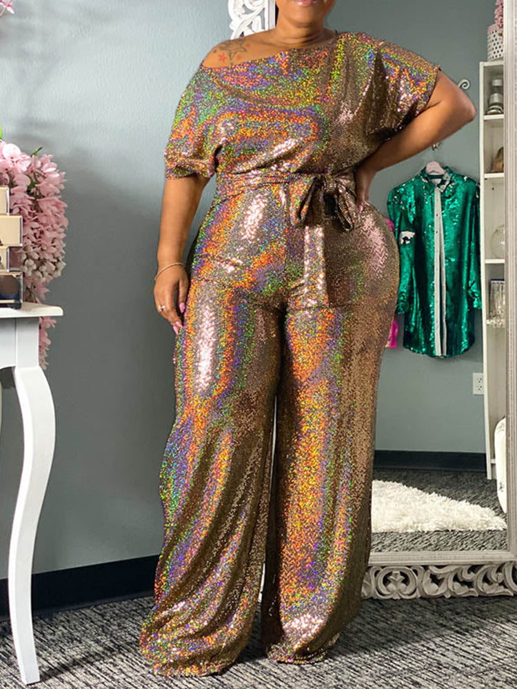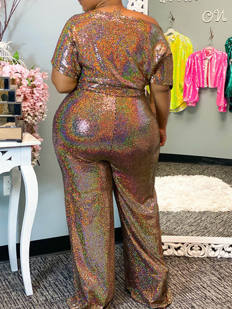 Elegant Wide Leg Sequin Jumpsuit