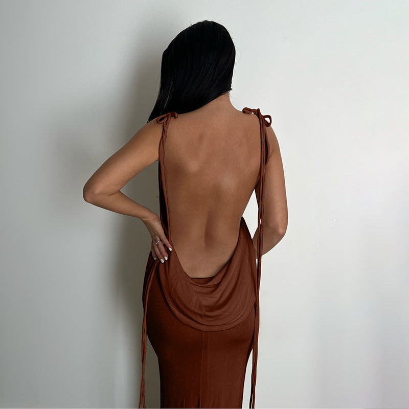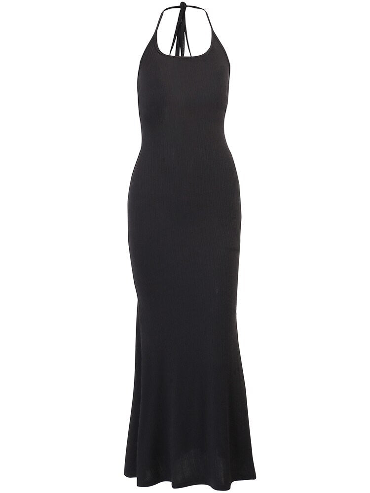 The Emmett Backless Long Dress by Bella Chix is the perfect combination of sophistication and comfort. Crafted from stretchy knit fabric for a flattering fit. it is designed with a timeless silhouette. The backless design adds a modern. edgy touch. making it a must-have for every wardrobe.