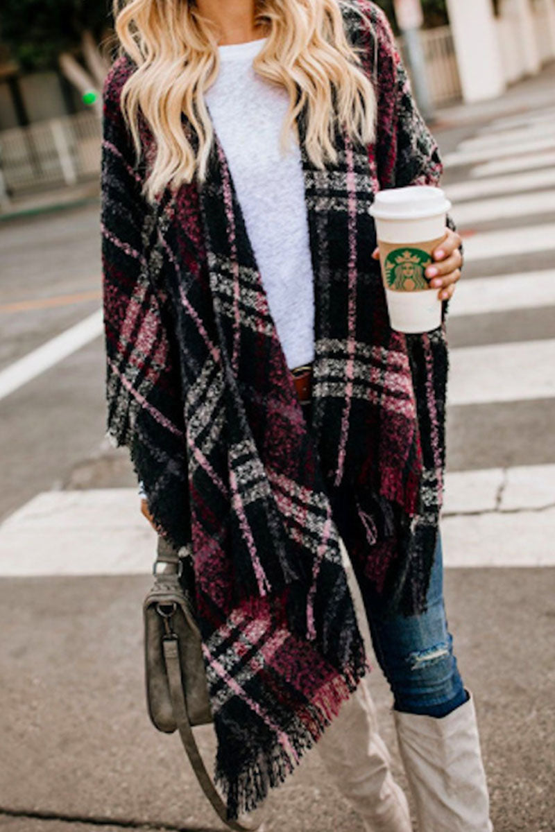 Fashion British Style Plaid Tassel Split Joint Outerwear
