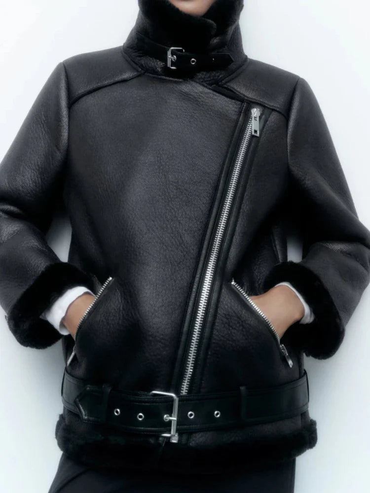 Faux Leather Double-Sided Zipper Biker Jacket Details :
