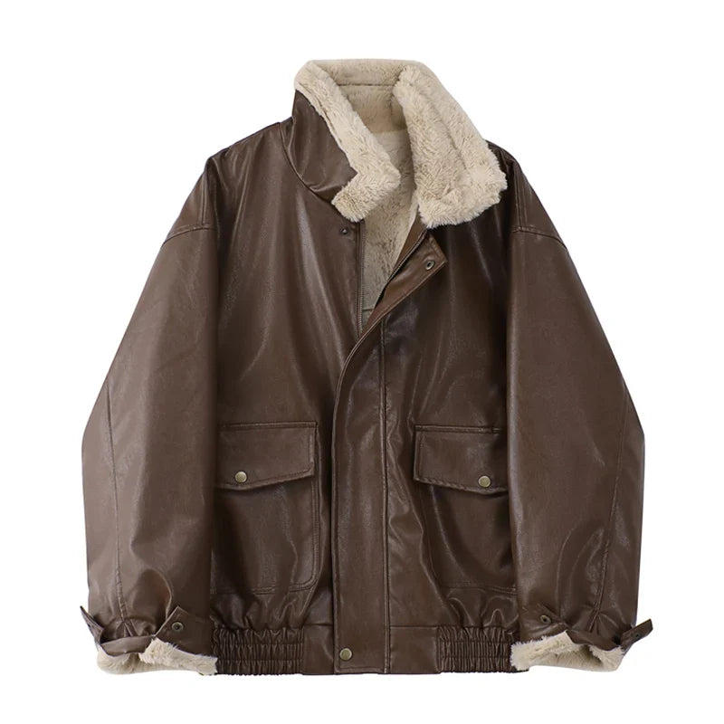 Faux Leather Lining Bomber Jacket