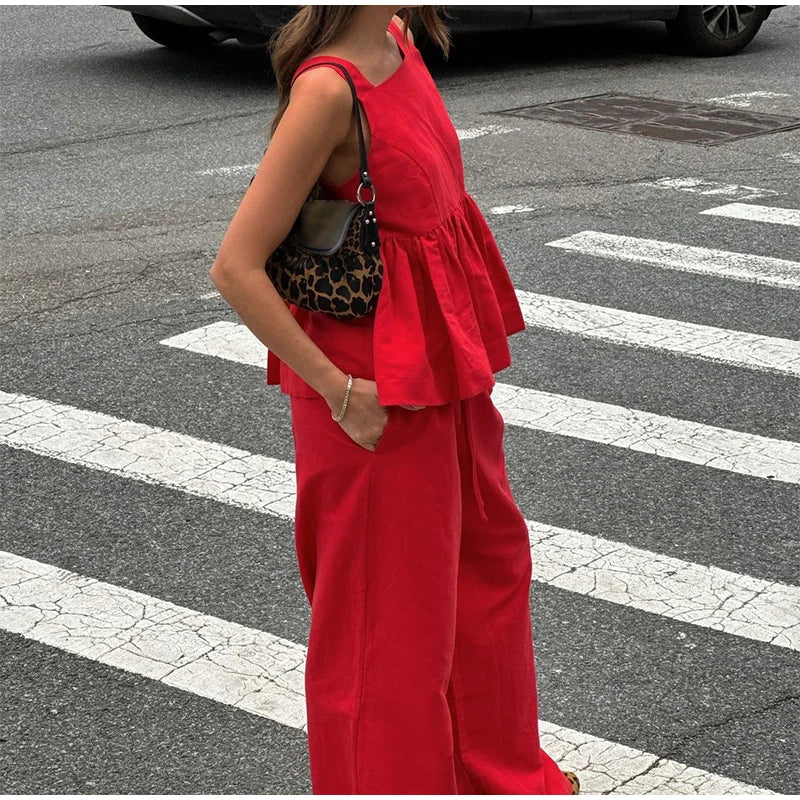 Make a statement with the Fiery Elegance Wide Leg Pants Set by Bella Chix💥 Featuring a sleeveless tank and loose pants. this set is perfect for those who love to stand out and embrace their boldness. Don't be afraid to turn heads with this fiery set. (Can you handle the heat?) 🔥
