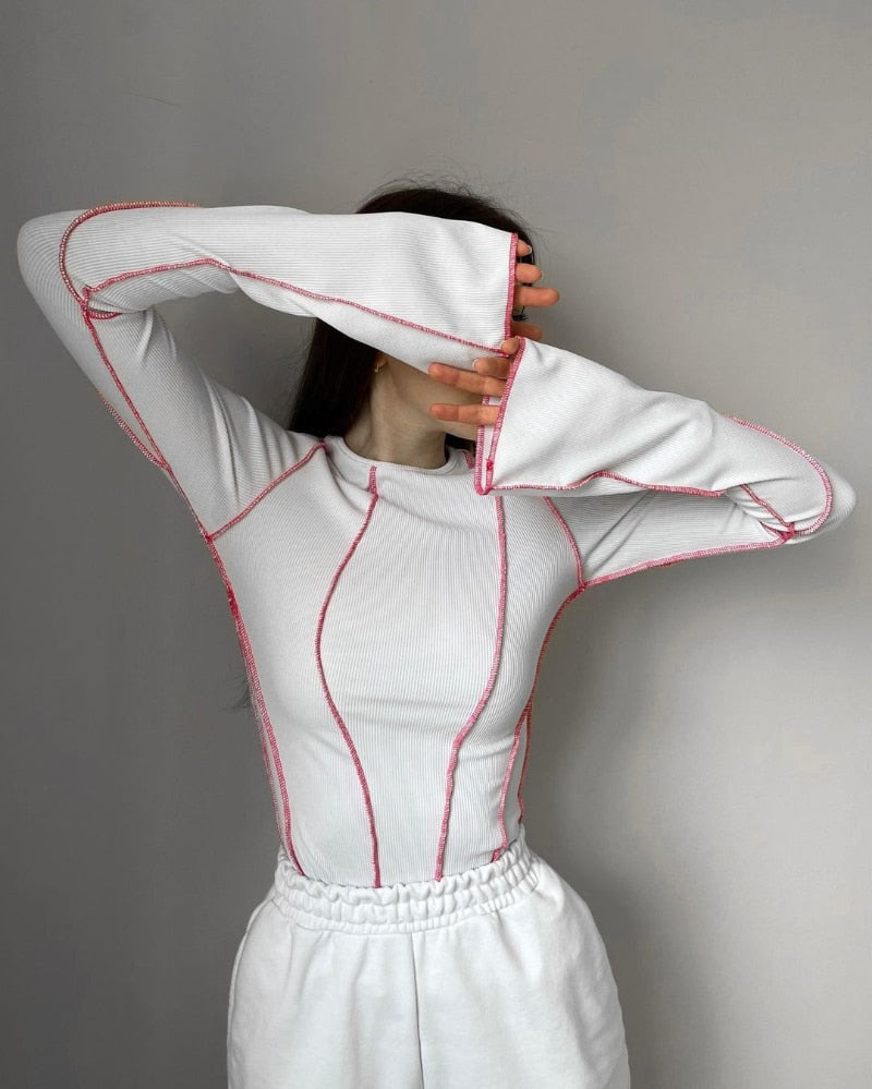 Be the belle of the ball in the Flare-Flow Solid Tee by Bella Chix. This sophisticated t-shirt features a skinny line decoration and elegant flare sleeves for a chic yet comfy look. Step out in style and turn heads with this one-of-a-kind wardrobe staple. Who said looking good couldn't be fun?!