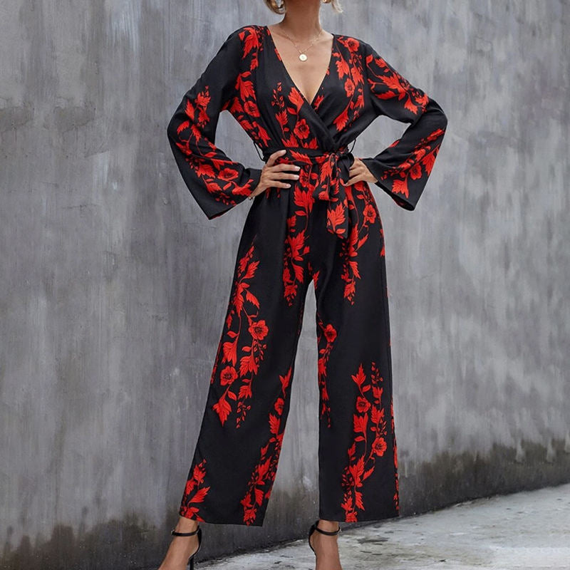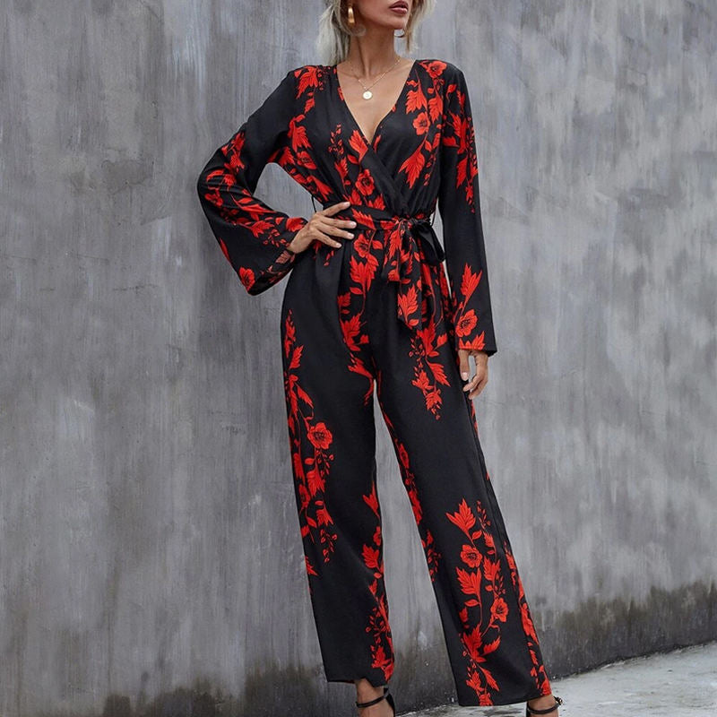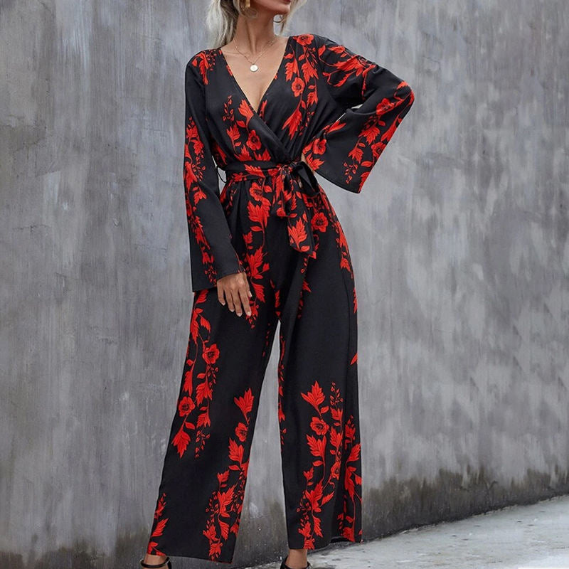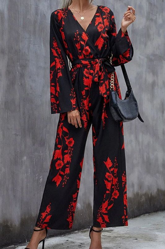 Discover the elegance of our Floral Print Belted Wide Leg Jumpsuit. a standout piece that redefines contemporary fashion. Crafted from lightweight fabric. it offers both comfort and style. making it perfect for any occasion.