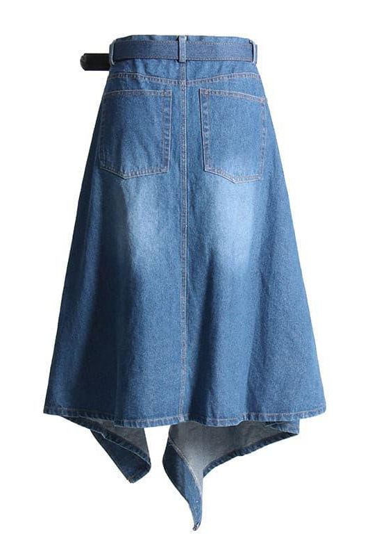 Introducing the High Waist Stitching Irregular Denim Skirt. a standout piece that redefines casual fashion. Its unique high-waisted design accentuates your silhouette while the irregular stitching adds an artistic flair. setting it apart from ordinary denim skirts.