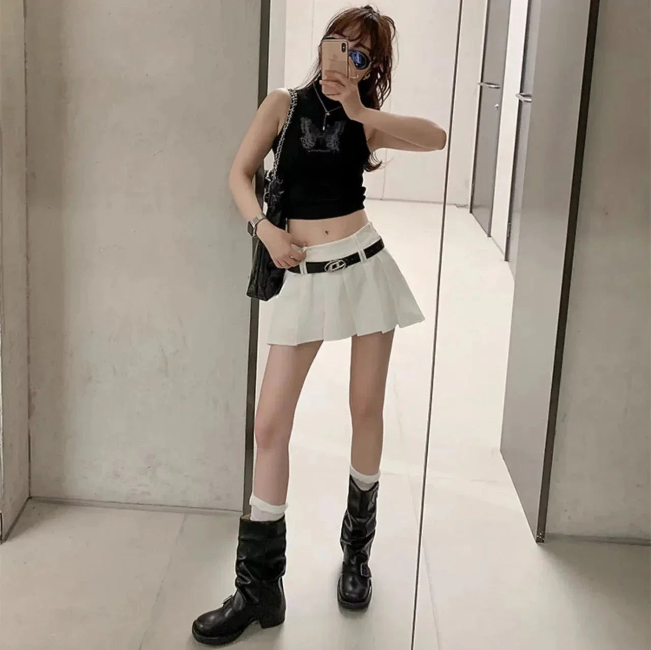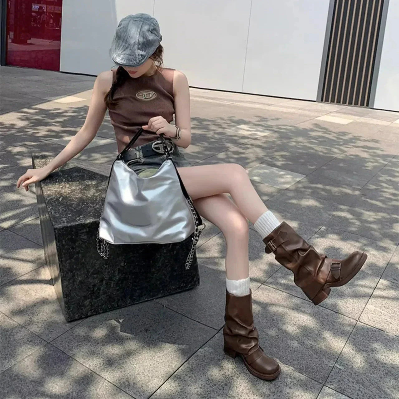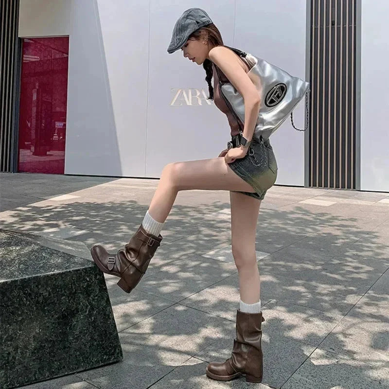 Take a walk on the funky side with the Hilania Pleated Mid Calf Boots by Bella Chix! These leather boots feature a pleated design and buckle detailing. giving them a unique and stylish look. With a slip-on style and thick heel for comfortable riding. you'll be ready to conquer the day in these knight-inspired boots.