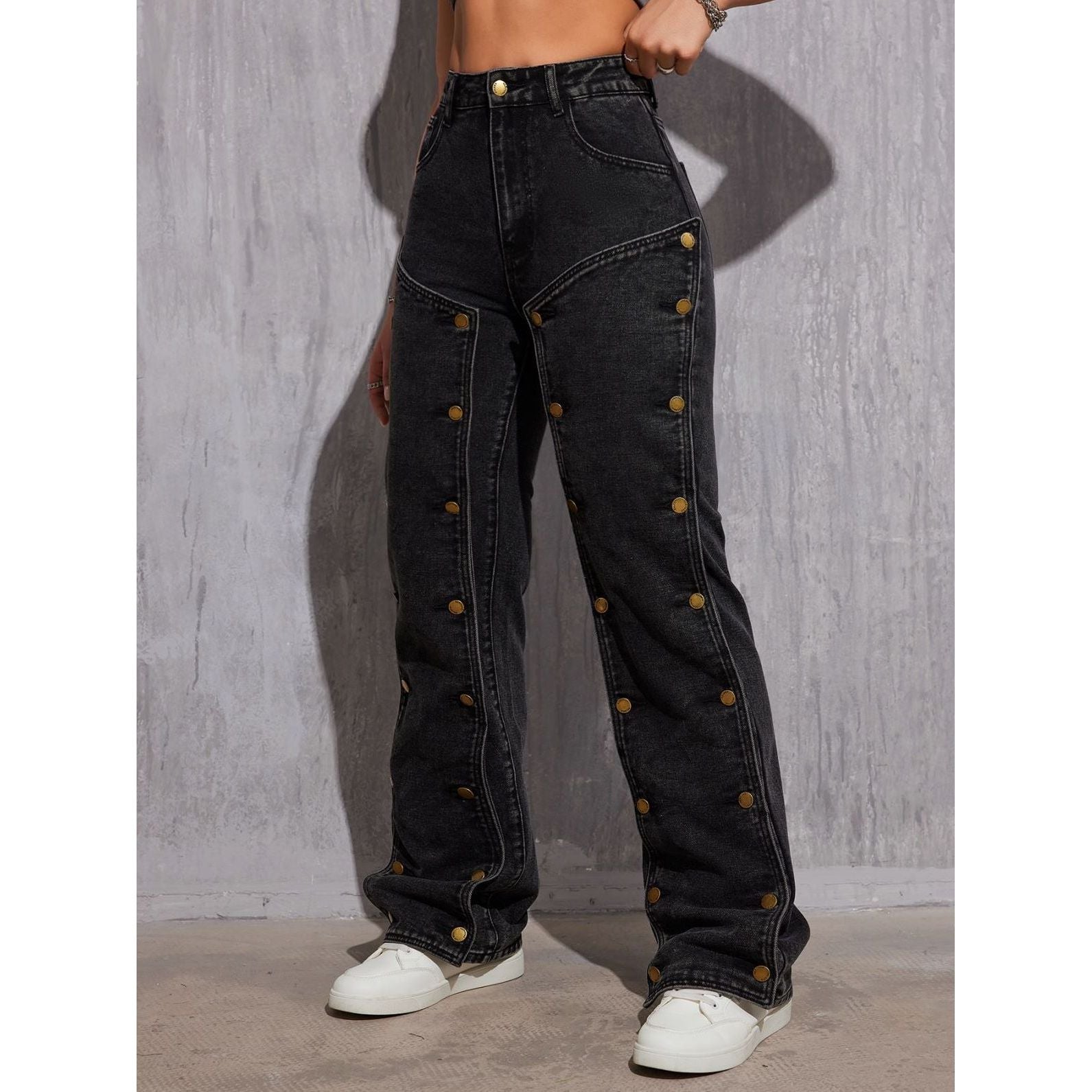 Elevate your street style with our Hip Hop Detachable Multi-button Straight Jeans. a true game-changer in fashion. Crafted from premium denim. these jeans stand out with their unique detachable buttons. allowing you to customize your look effortlessly.