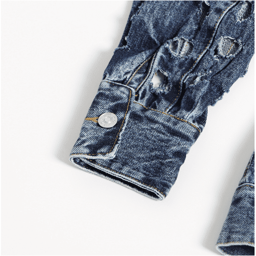 Introducing the Hole Loose Lace Denim Jacket. a standout piece that redefines street style. Crafted from high-quality cotton. this jacket features a unique collage and splicing design. making it a true fashion statement.