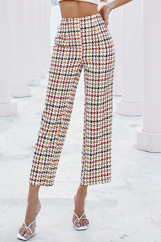 Discover the elegance of our Houndstooth Straight Leg Pants. a perfect blend of classic style and modern comfort. Tailored for an impeccable fit. these pants feature a striking houndstooth print that stands out in any wardrobe.