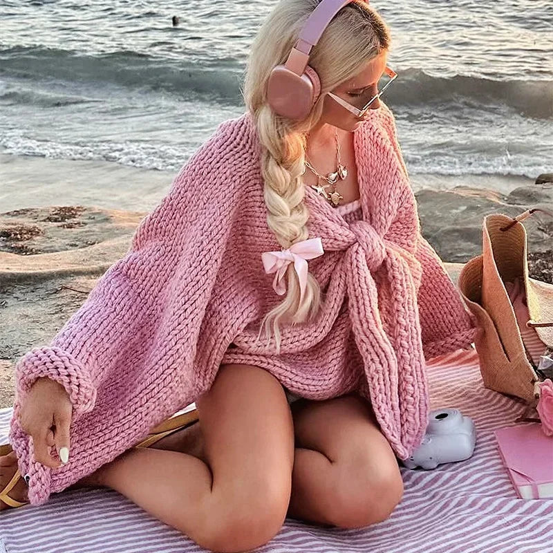 Knit Bow Tie Up Crop Sweater