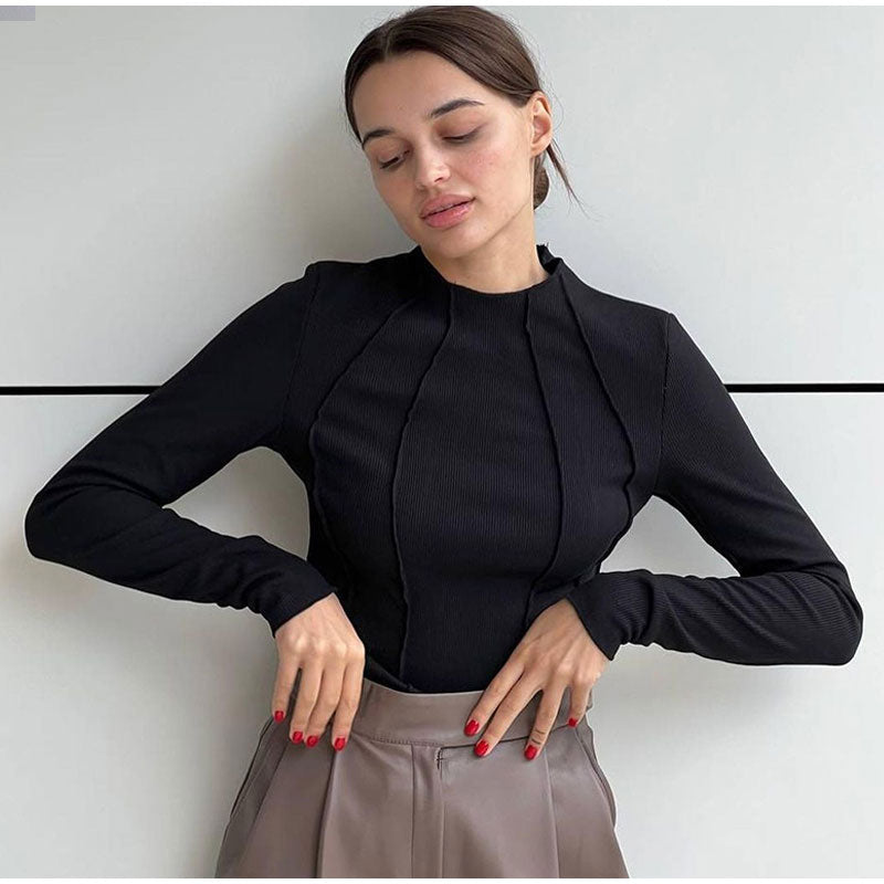 Rock the runway with Kristell's ruched turtleneck t-shirt by Bella Chix! Stay warm and lookin' cool in this slim-fit. long-sleeve t-shirt that'll make 'em do a double take. Cuz it's turtley awesome!