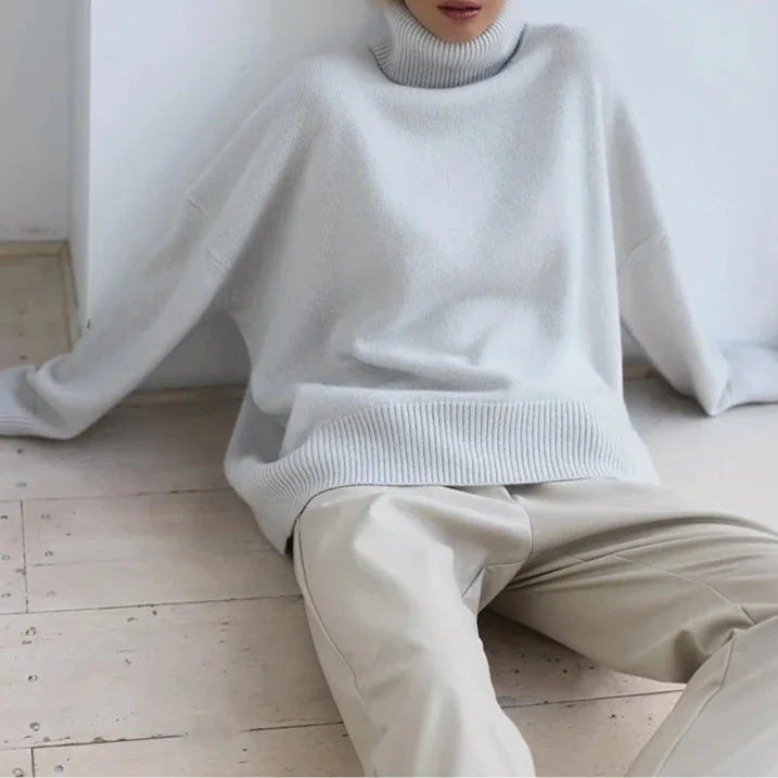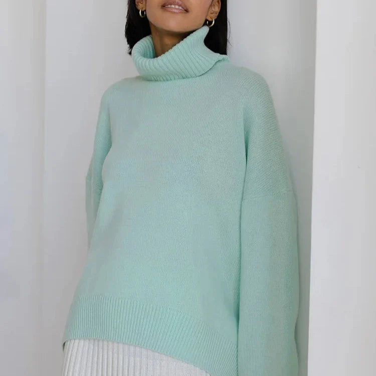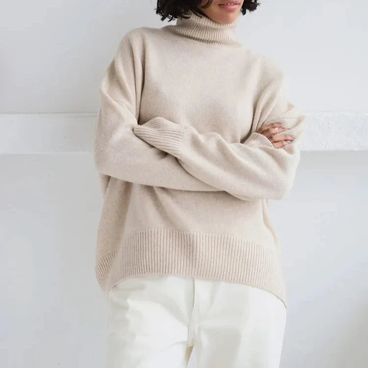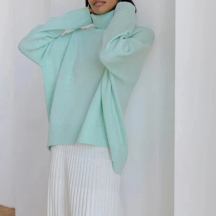Warm up in style with the Kyra Turtleneck Oversize Sweater by Bella Chix. This knit pullover features a trendy oversized fit and a high turtleneck for ultimate coziness. Perfect for pairing with your favorite jeans or leggings. this sweater will keep you stylish and comfortable all season long.