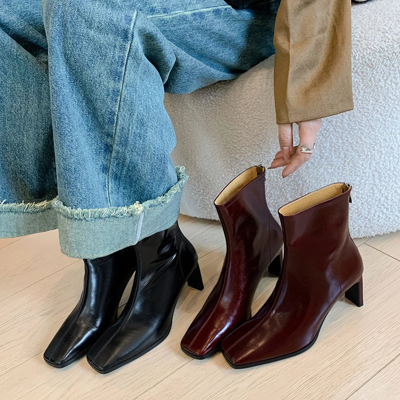 Slide your feet into the luxurious Magda Leather Ankle Boots by Bella Chix and elevate your style game. These real leather boots feature a thick high heel. providing both comfort and chicness. With their short bootie design. you'll walk effortlessly with a touch of edge. (Walk fierce and fab in these ankle boots!)