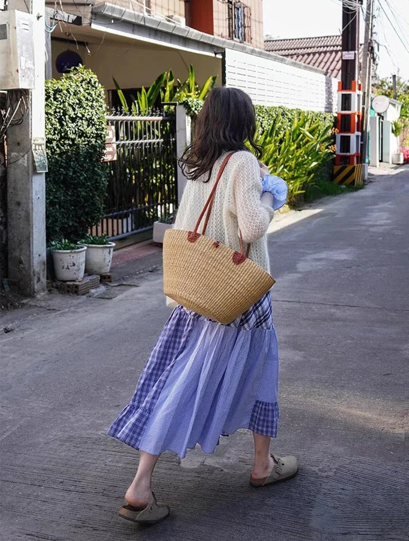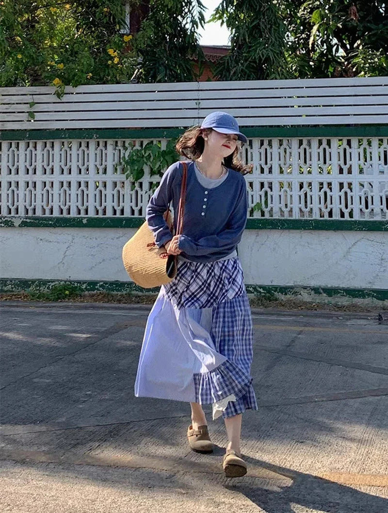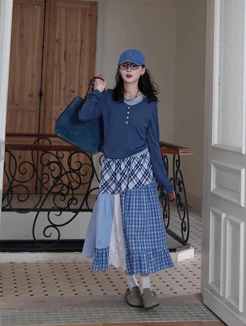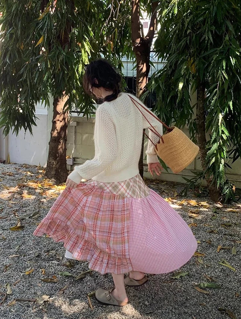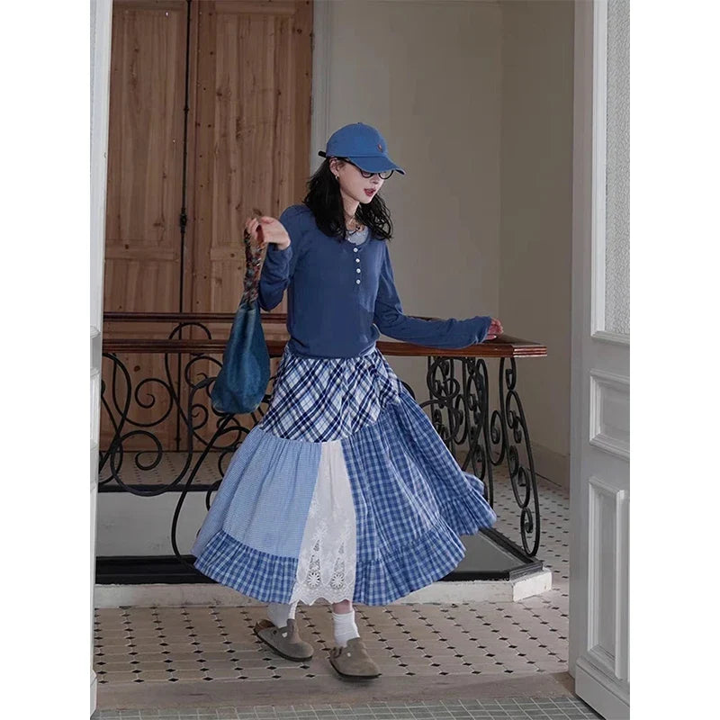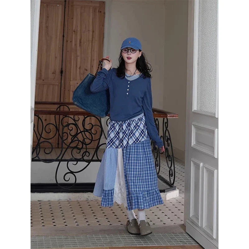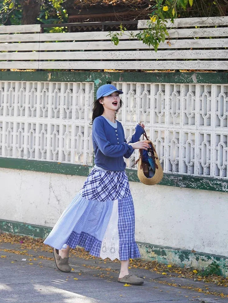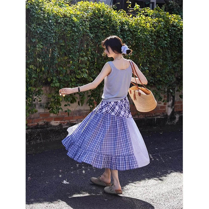 Step out in unique urban style with our Plaid Patchwork Midi Skirt. a trendy addition for any adult wardrobe. This eye-catching skirt features a distinctive plaid pattern with a modern patchwork design. creating a visually rich and dynamic look. Delicate lace decoration adds an intricate touch. enhancing its overall appeal. Its elegant A-LINE silhouette gracefully extends to a mid-calf length. ensuring comfortable movement and a relaxed yet stylish presence.