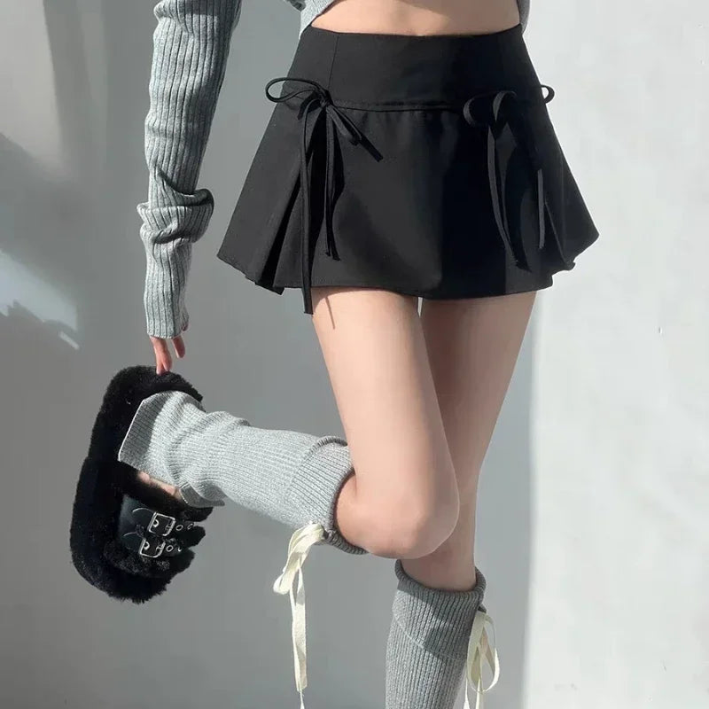 Embrace your playful side with Bella Chix's Distraction Box Pleated Bow Skirt! Featuring a low rise design and pleated silhouette. this miniskirt is sure to turn heads. The bow detail adds a unique touch. making it perfect for a fun and flirty look. Stand out in style with this playful skirt.