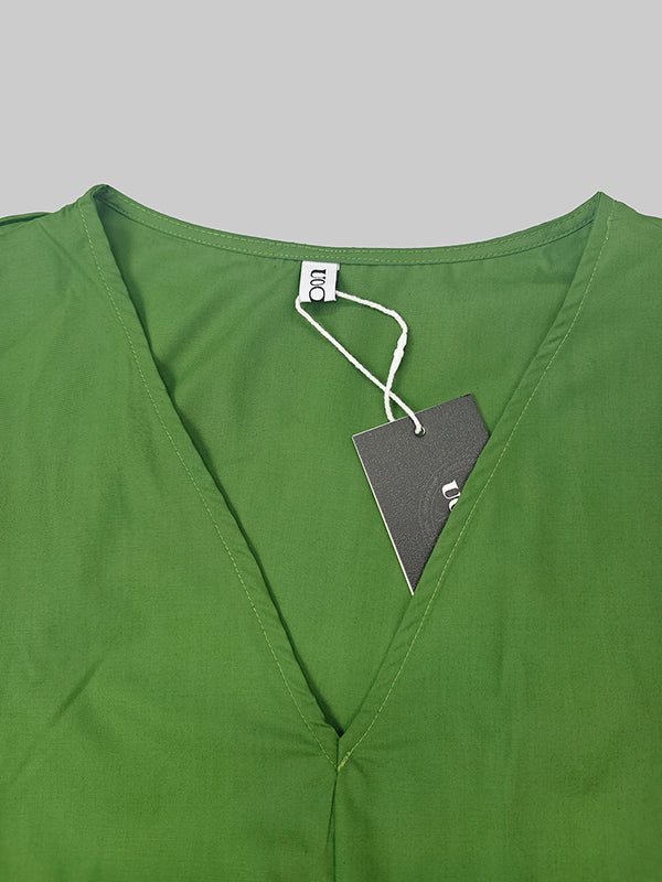 Loose Short Sleeves Pleated Pockets Solid Color Split-Joint V-Neck Maxi Dresses