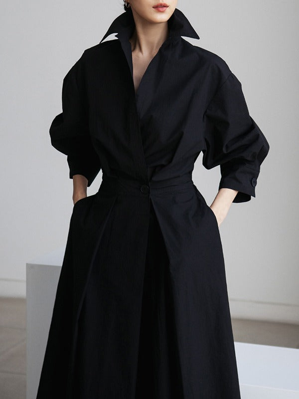 | Feature | Tied Waist . Pleated . Split-joint . Solid Color |