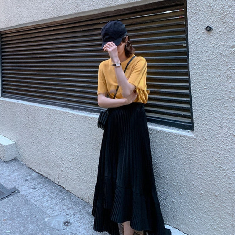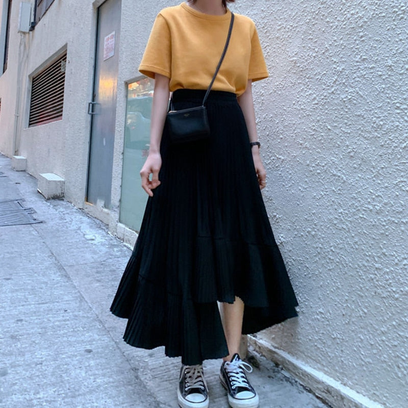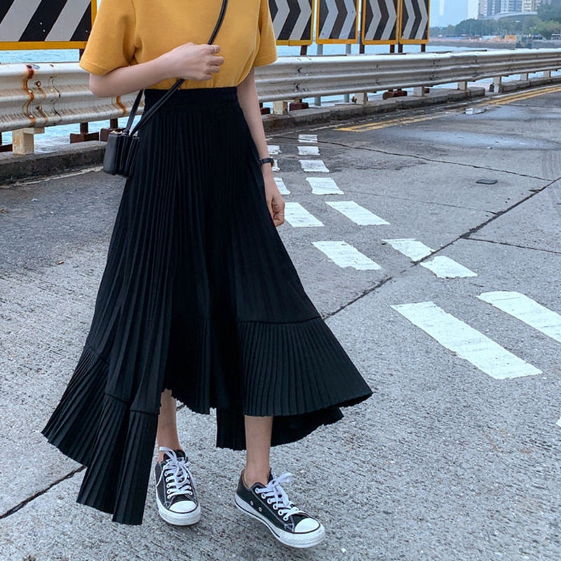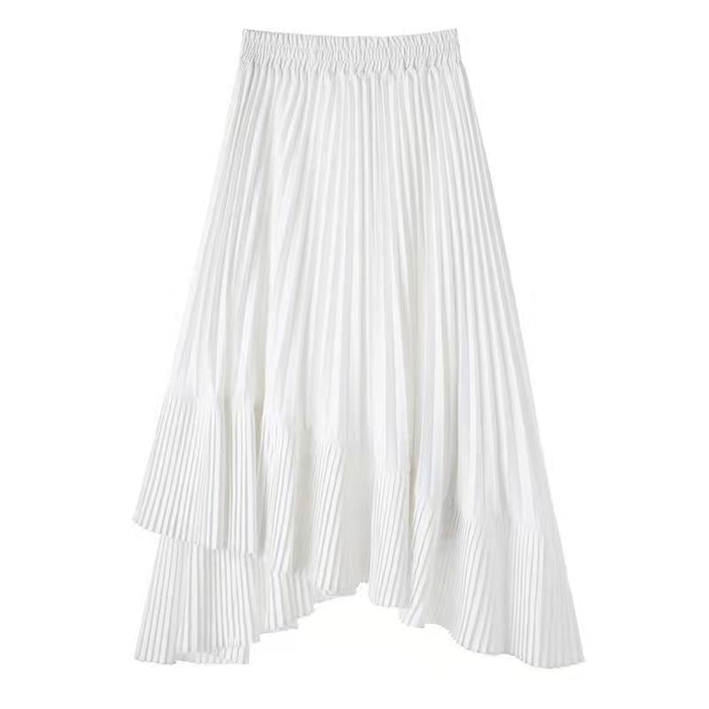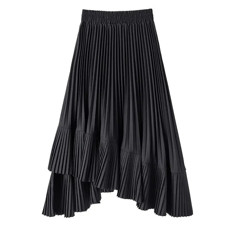 Look sophisticated and modern in this one-of-a-kind long skirt! The Reno Pleated Asymmetrical Long Skirt by Bella Chix is crafted with flowing pleats and a beautiful asymmetrical silhouette. but don't let its elegance fool you �this skirt is full of unexpected style with its flirty ruffle accents. Wear it to your next event and get ready to turn heads!