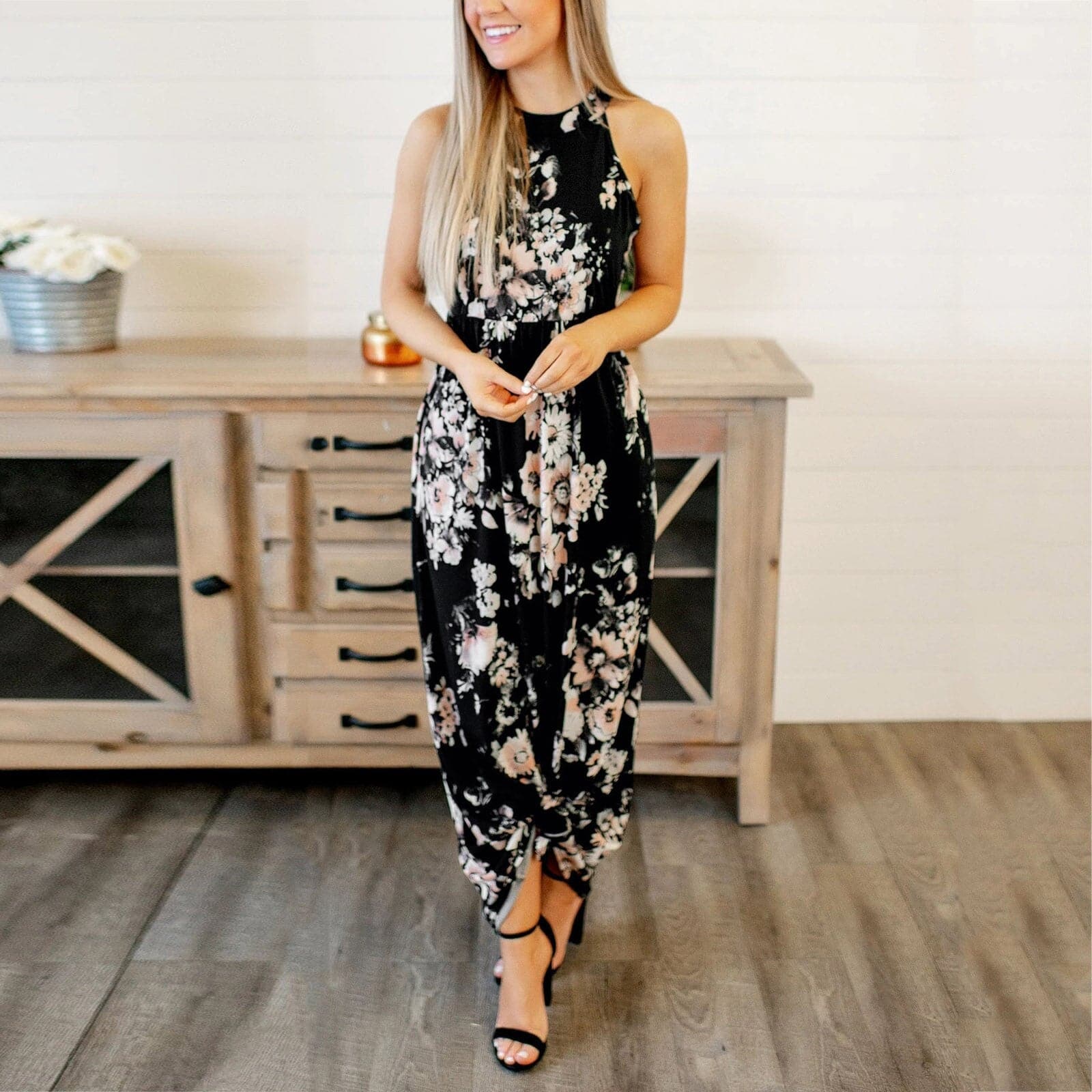 Jeebs - Retro Floral Print Maxi Dress For Women Summer Sleeveless Casual Loose Crewneck Long Dress Bohemian Beach Sundress