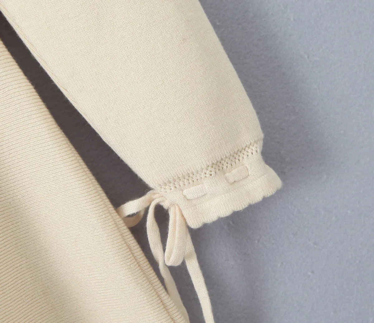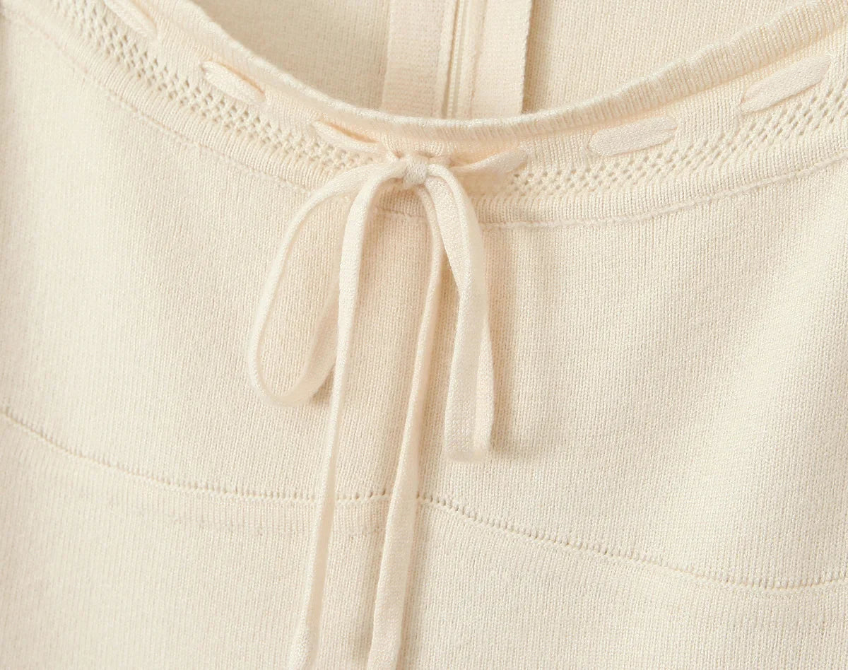Ribbed Square Neck Long Sleeve Ribbion Mini Dress