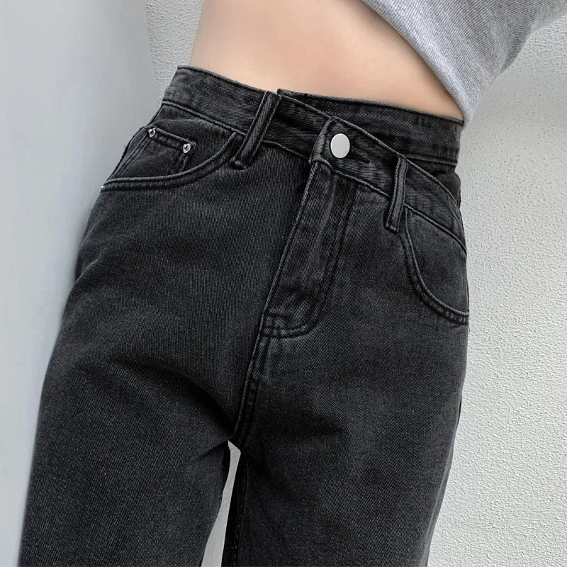 Update your mom jeans collection with a twist! Bella Chix's Shadowline Vintage Mom Fit Jeans feature a unique crossover waist for maximum comfort and style. Say goodbye to boring. traditional mom jeans and hello to a unique and flattering fit. Perfect for any fashion-forward mom on the go!