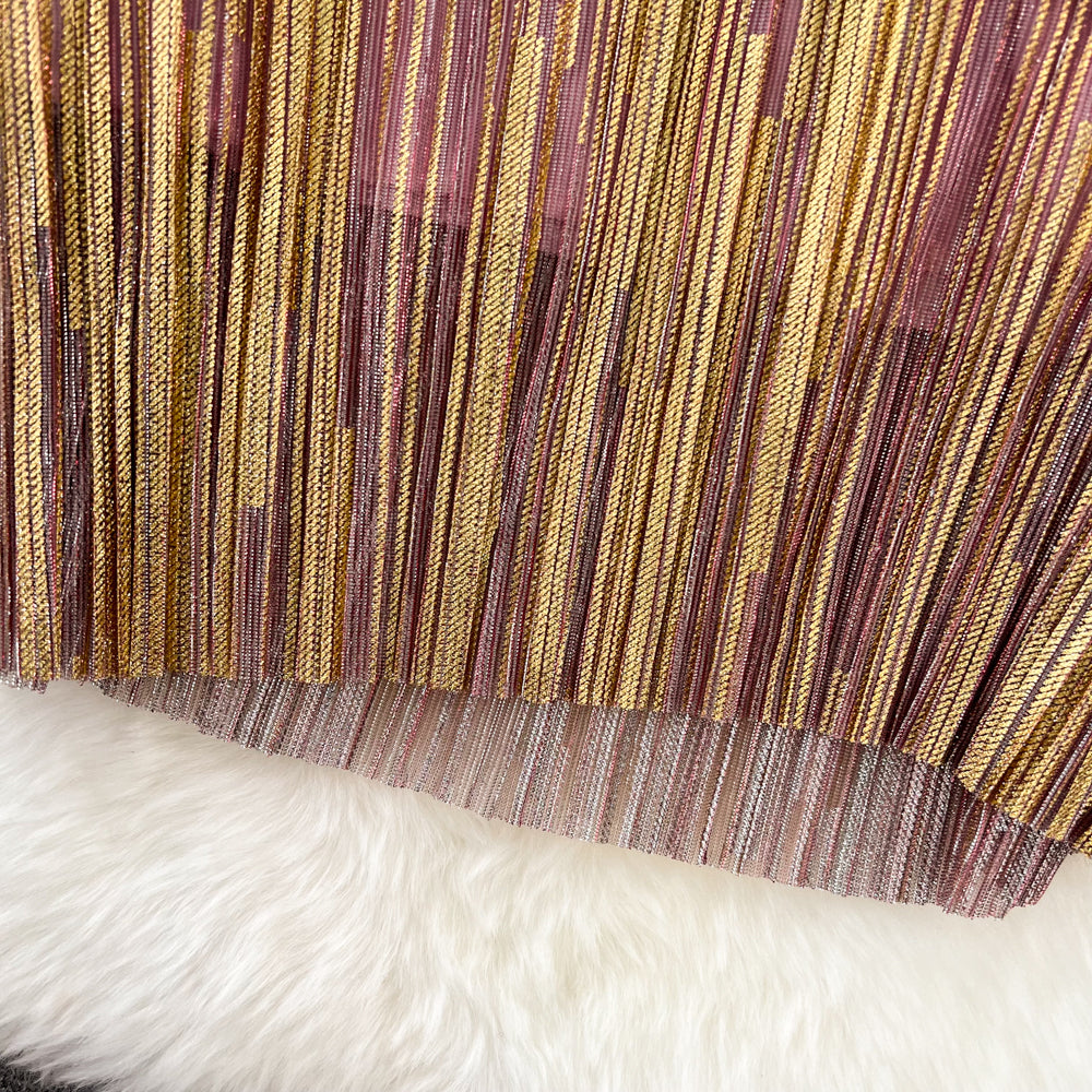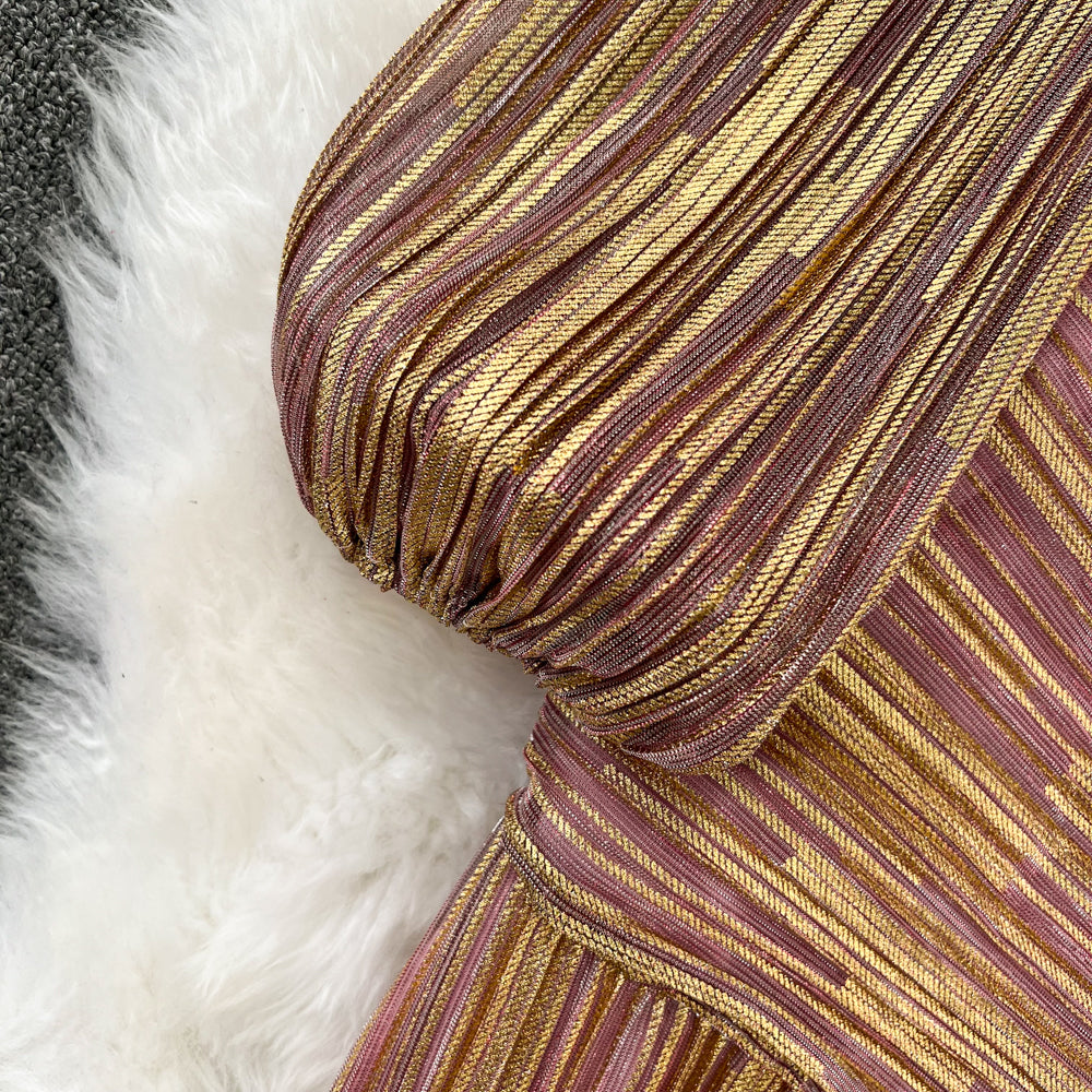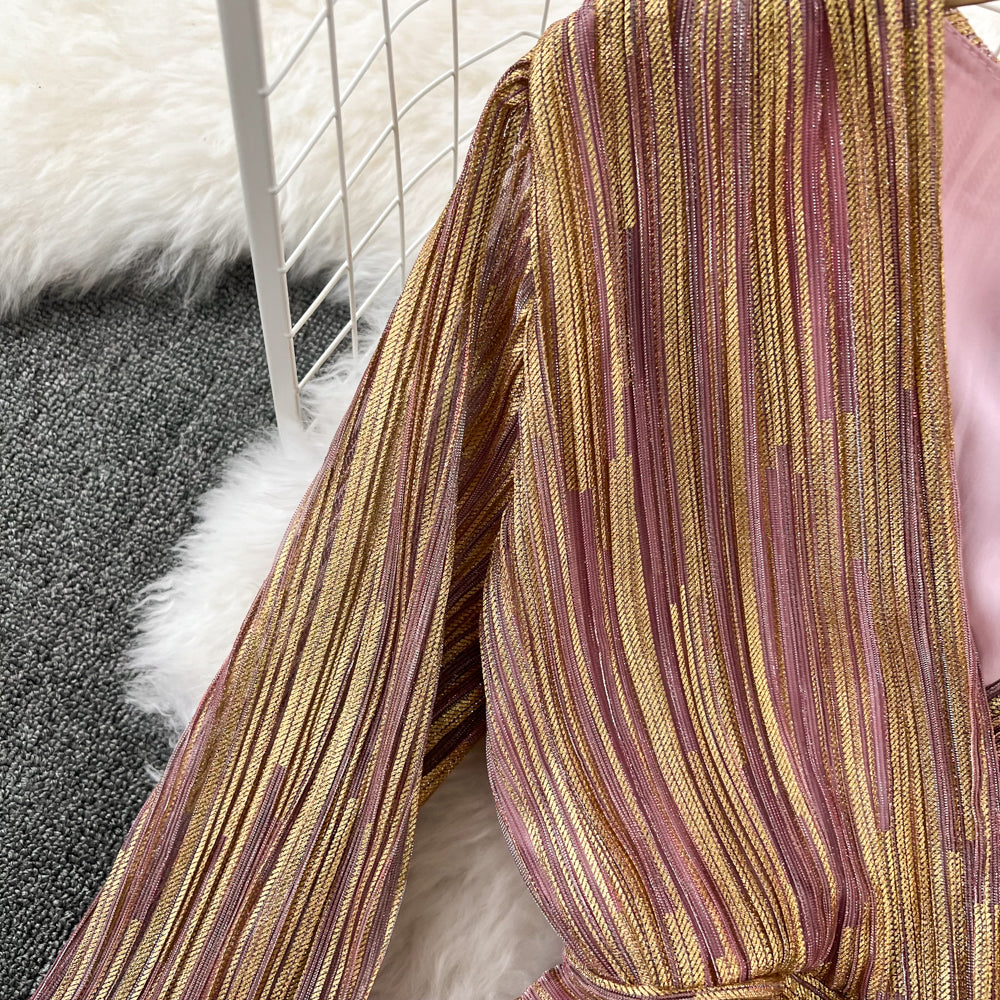 Flaxmaker Long Sleeve Bright Silk V Neck Waist Party Dress