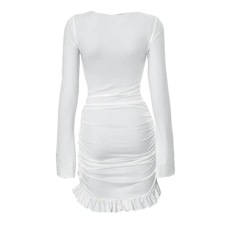Slip into the Tegan Ruched Mini Dress by Bella Chix for an instant confidence boost! This playful piece features cozy long sleeves. a flattering O-neck. and stylish fold details that hug your curves in all the right places. The slim knitted fabric creates a sleek silhouette that's perfect for dancing the night away or turning heads at your next brunch date!
