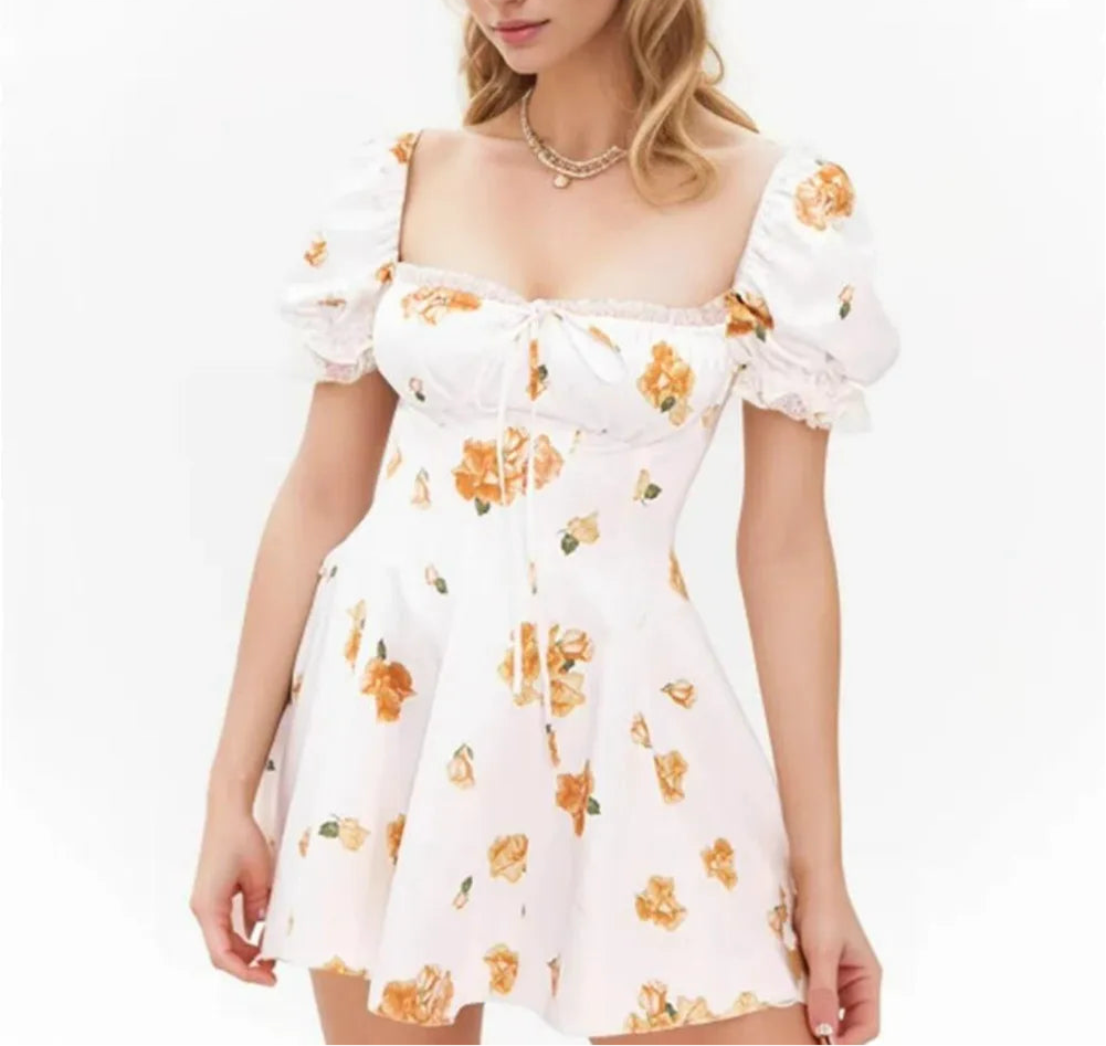 White Floral Puff Sleeve Mini Dress
