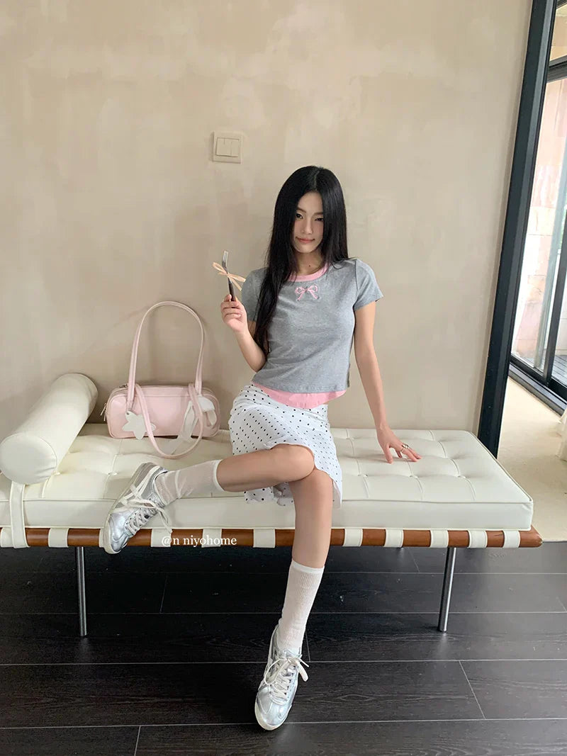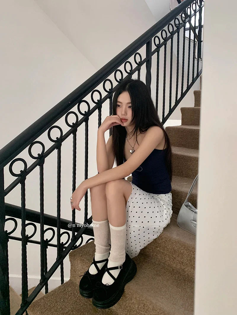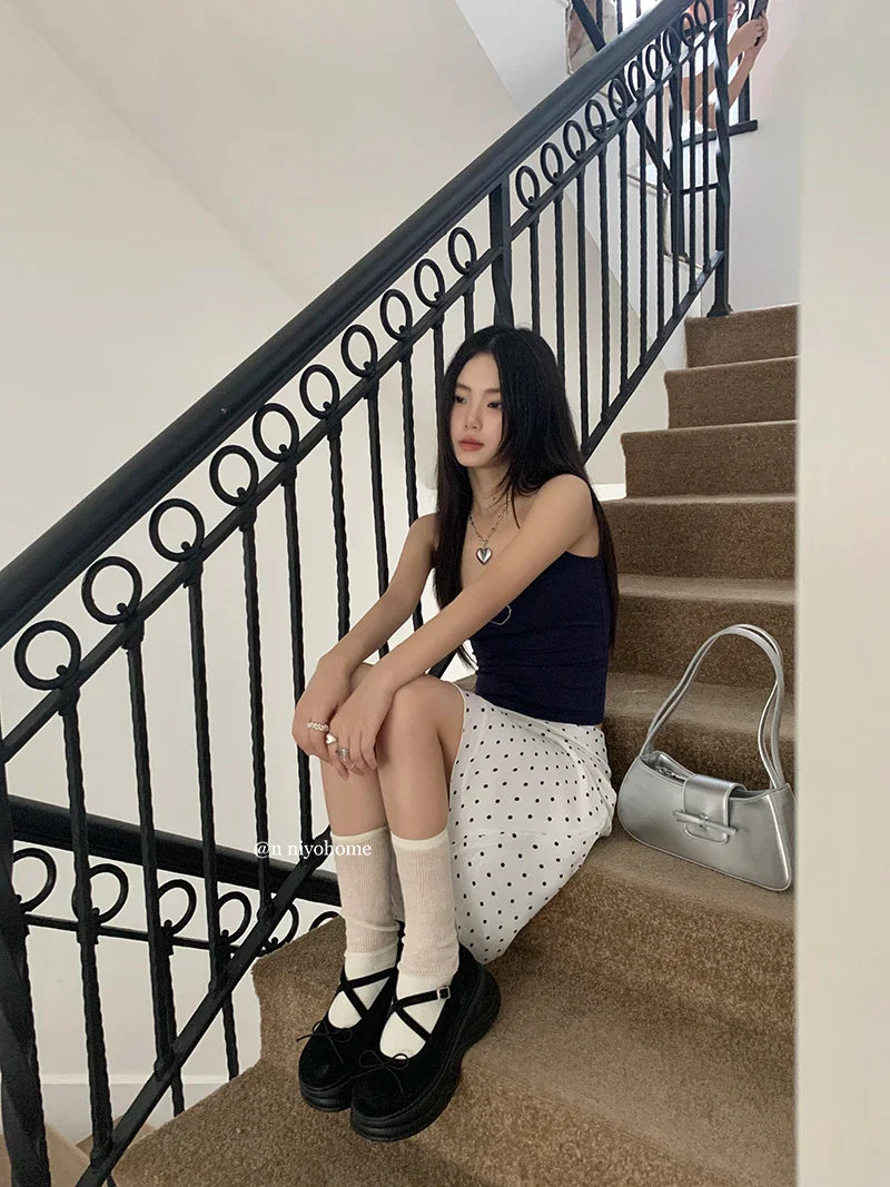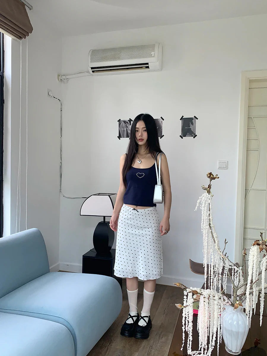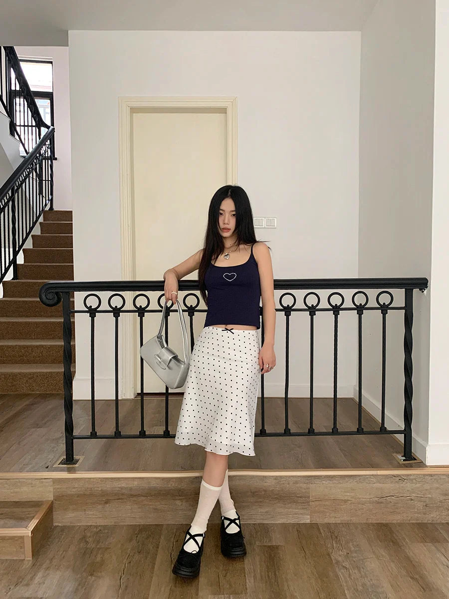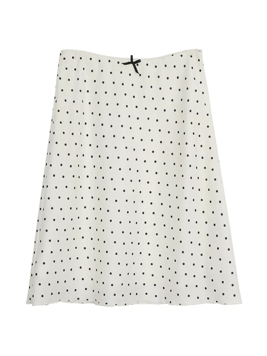 White Polka Dot Midi Skirt
