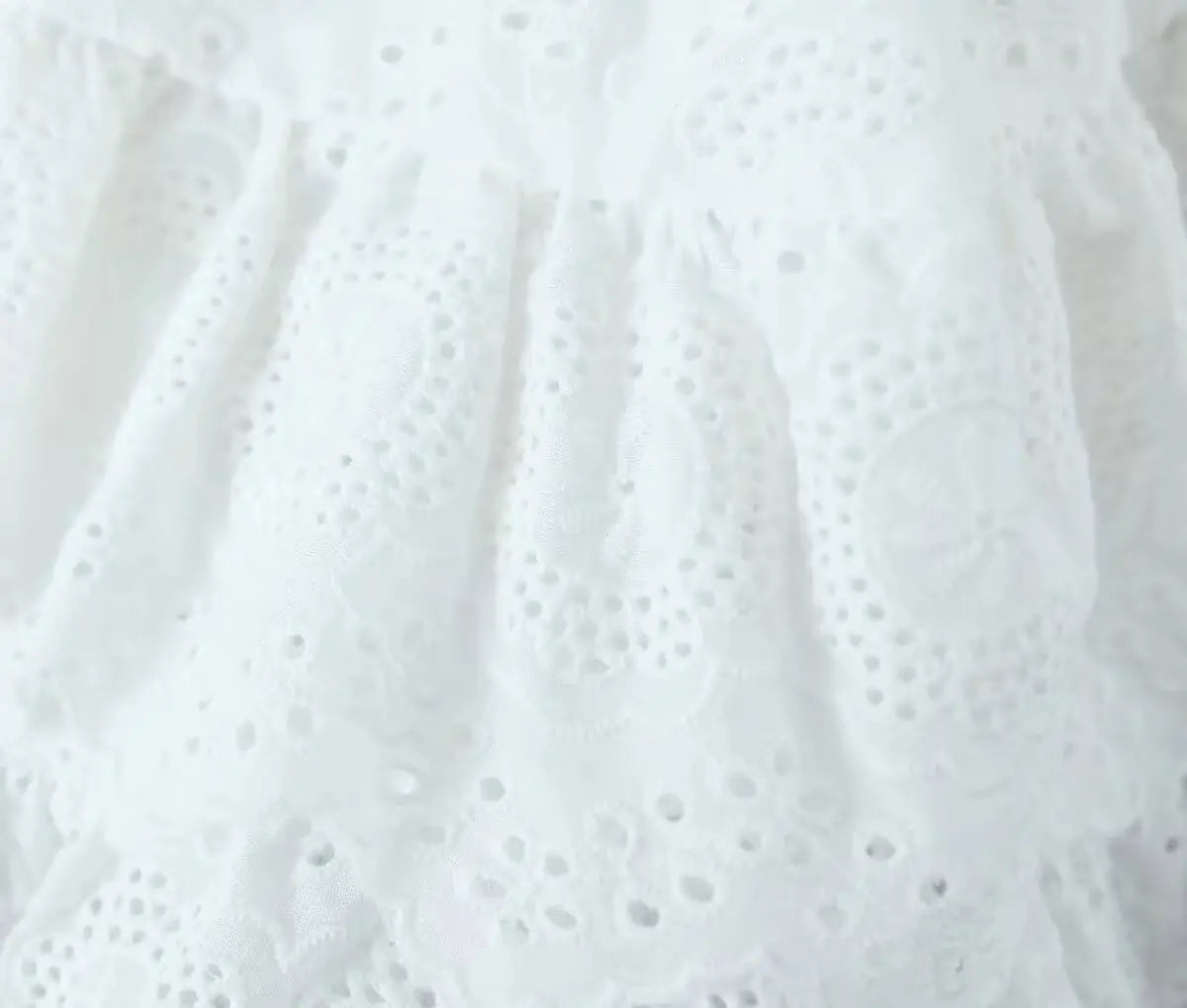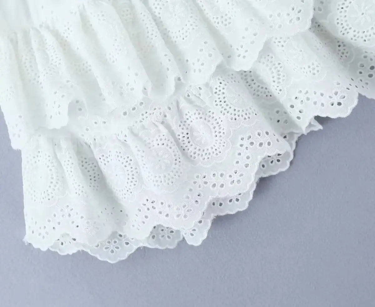 White Ruffles Embroidery Elastic Waist Mini Skirt