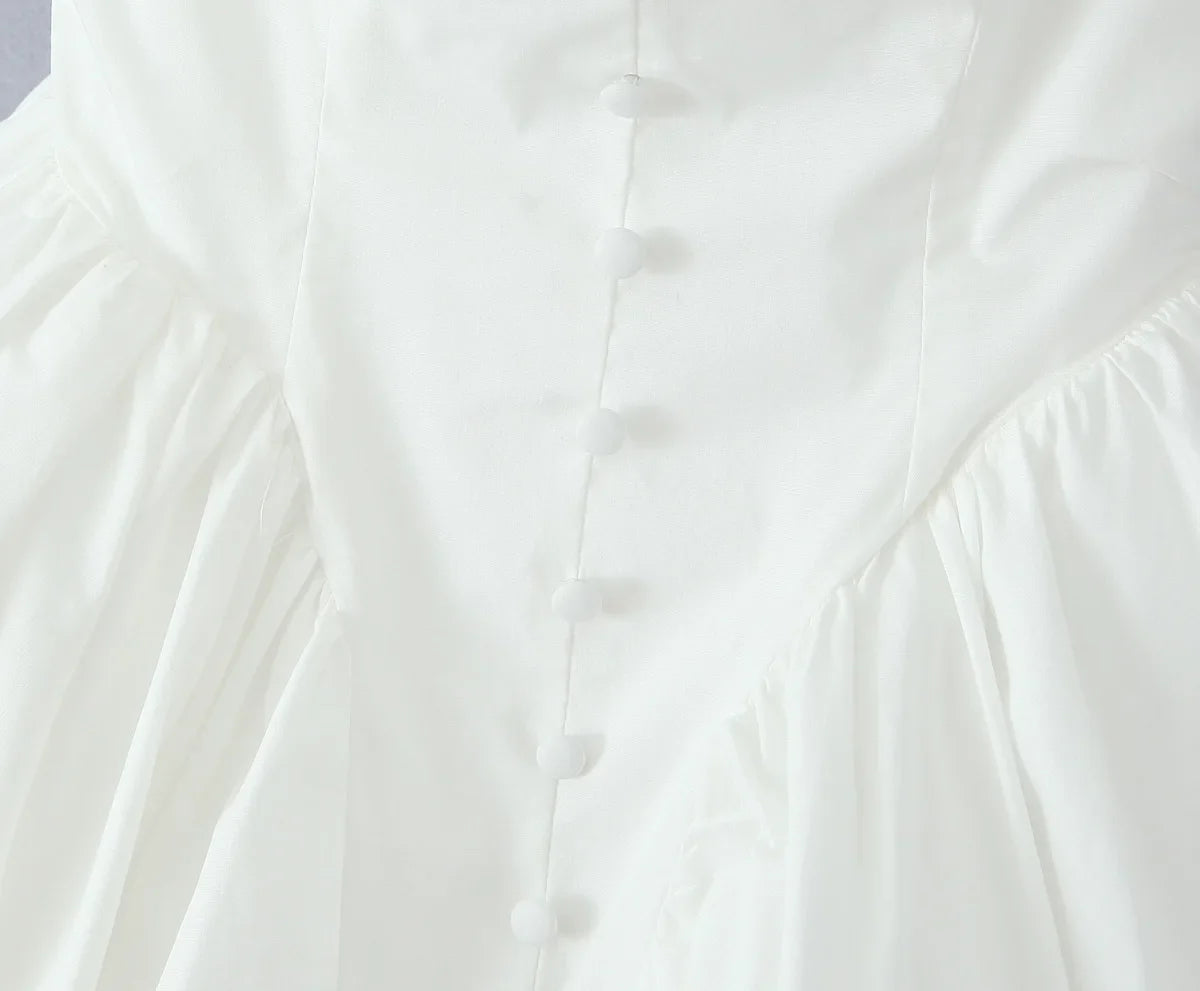 White Square Neck Short Sleeve Mini Dress