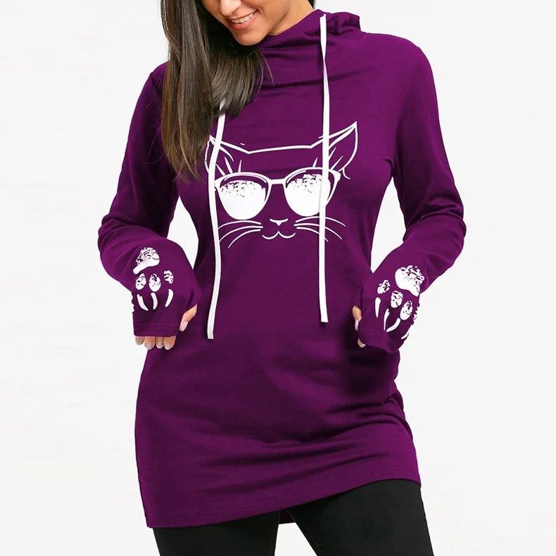 Jeebs - Plus Size Harajuku Cat Printed Hoodies