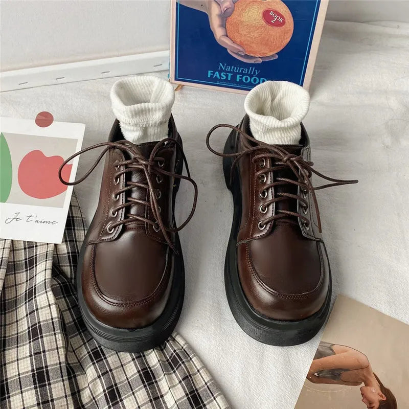 Introducing Your Vintage Bestie Boots by Bella Chix - the ultimate combination of vintage leather and modern style. These lace up loafer oxford shoes will be your go-to footwear. providing both comfort and fashion. Step out in style with your new bestie boots!